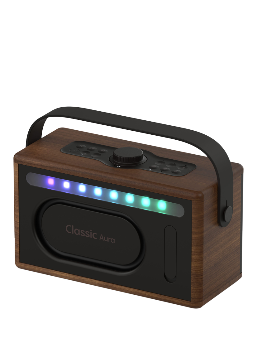 With an impressive sound output and atmospheric light patterns, Pure’s Classic Aura portable Bluetooth speaker is the ideal way to set the mood both, indoors and out.