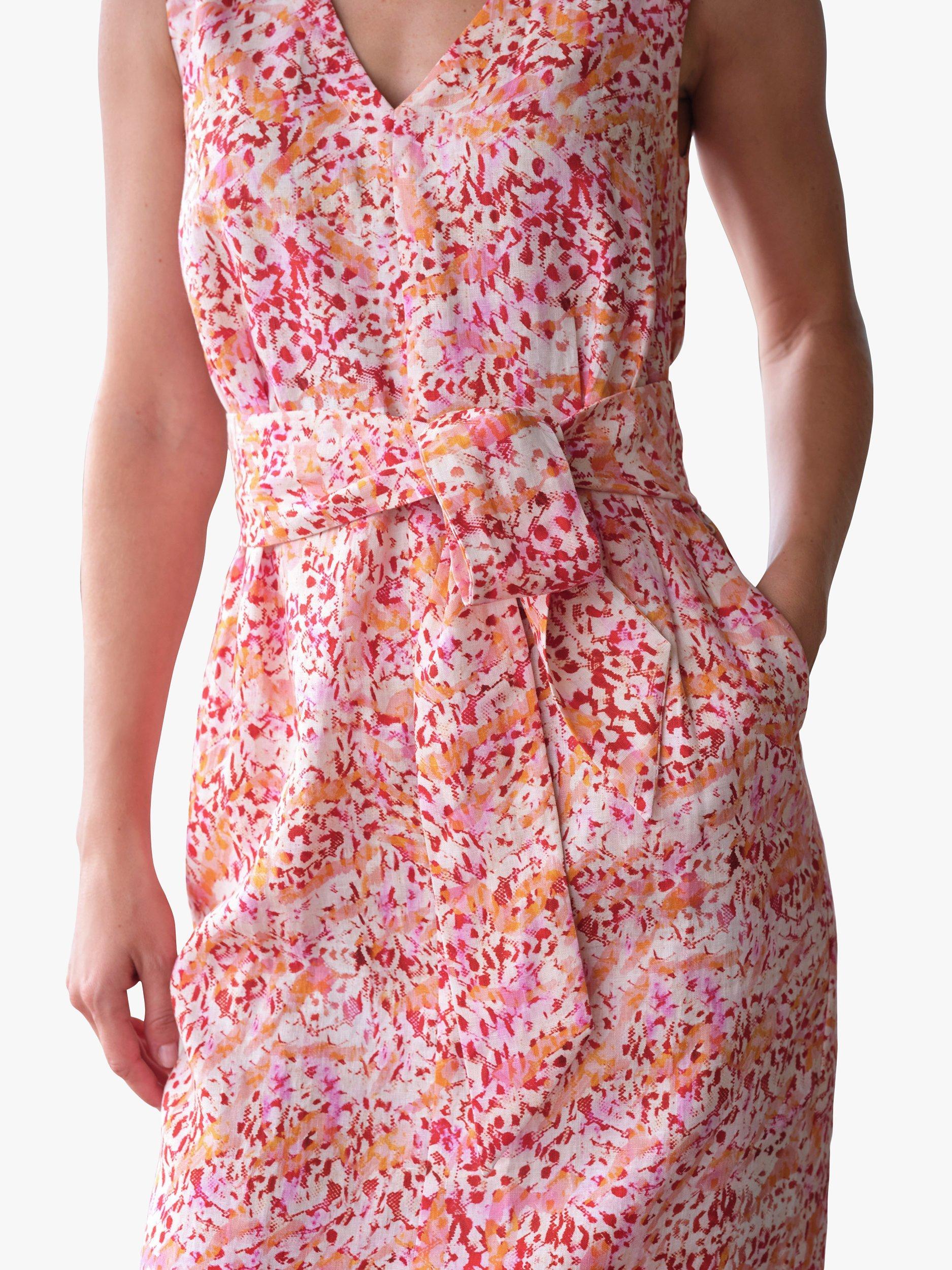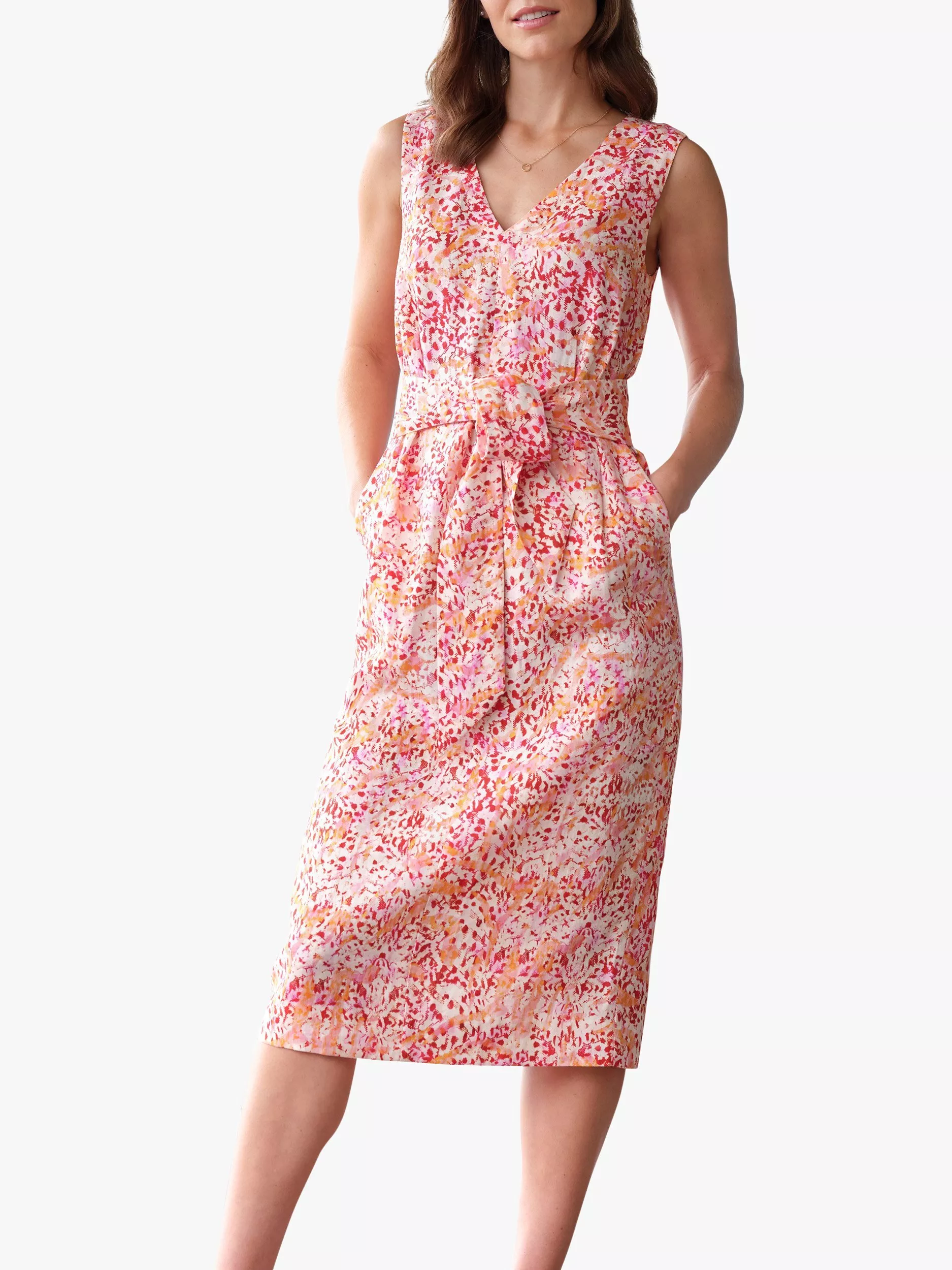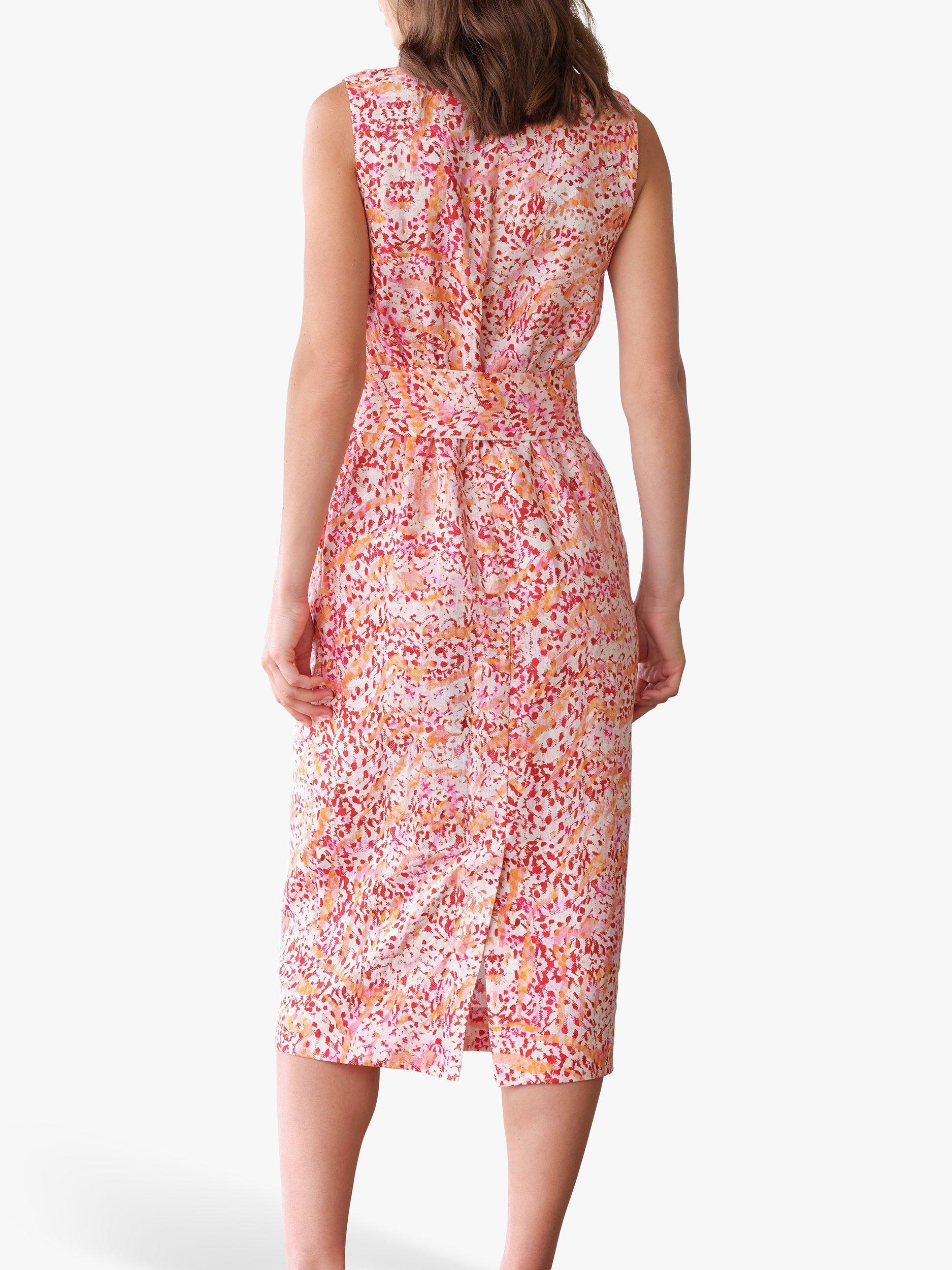 Pure CollectionAbstract Print Linen Dress, Pink/Multi