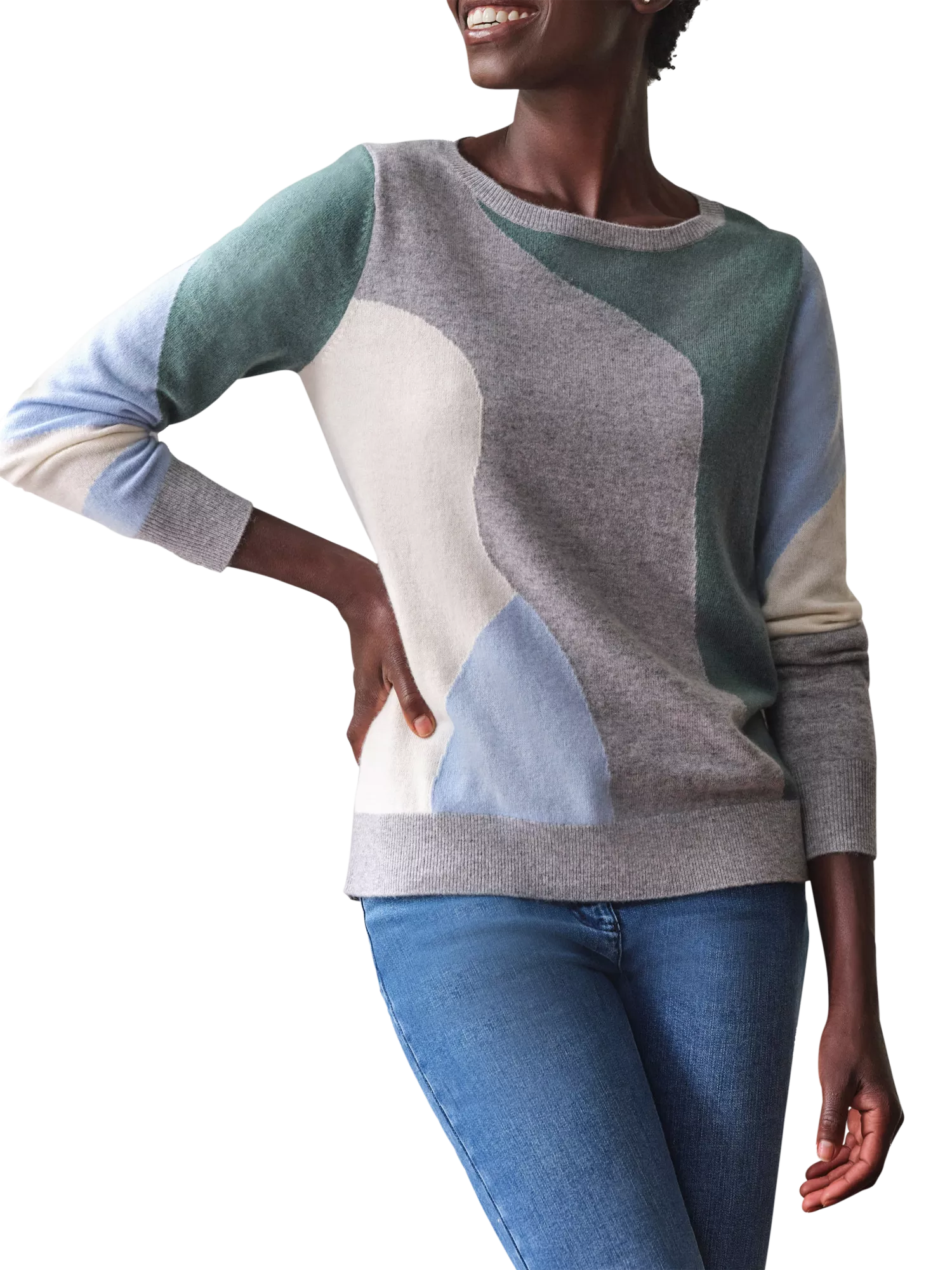 Pure CollectionAbstract Wool Cashmere Jumper, Grey/Multi