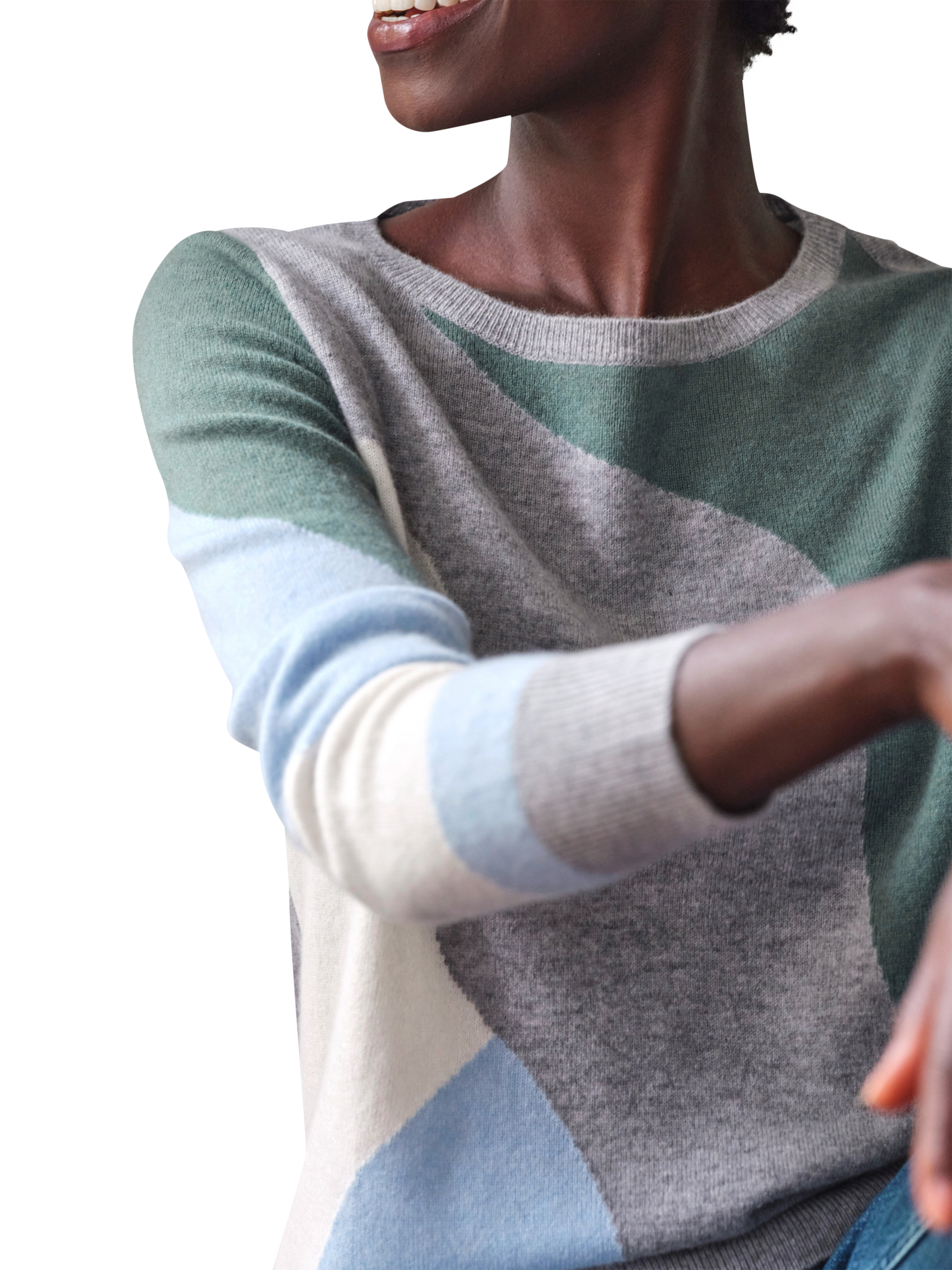 This abstract wool and cashmere blend jumper offers style, comfort and warmth. The colour makes this piece versatile and eye-catching while the classic crew neckline makes it easy to match with any outfit.