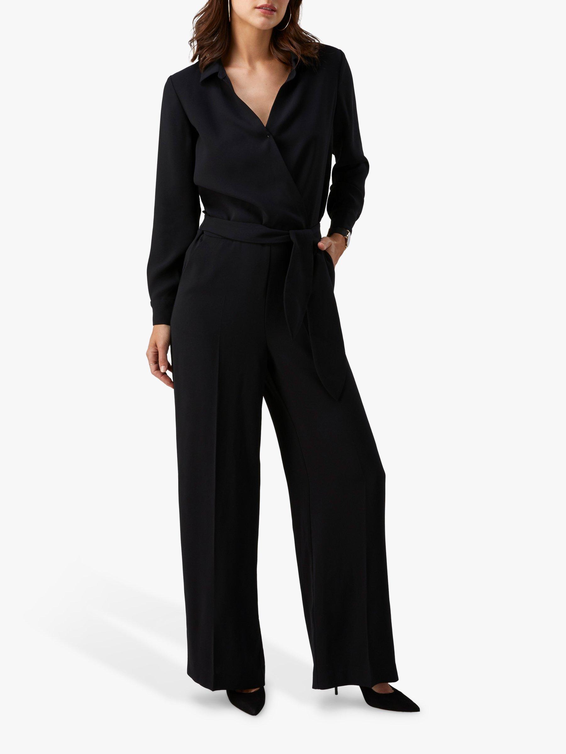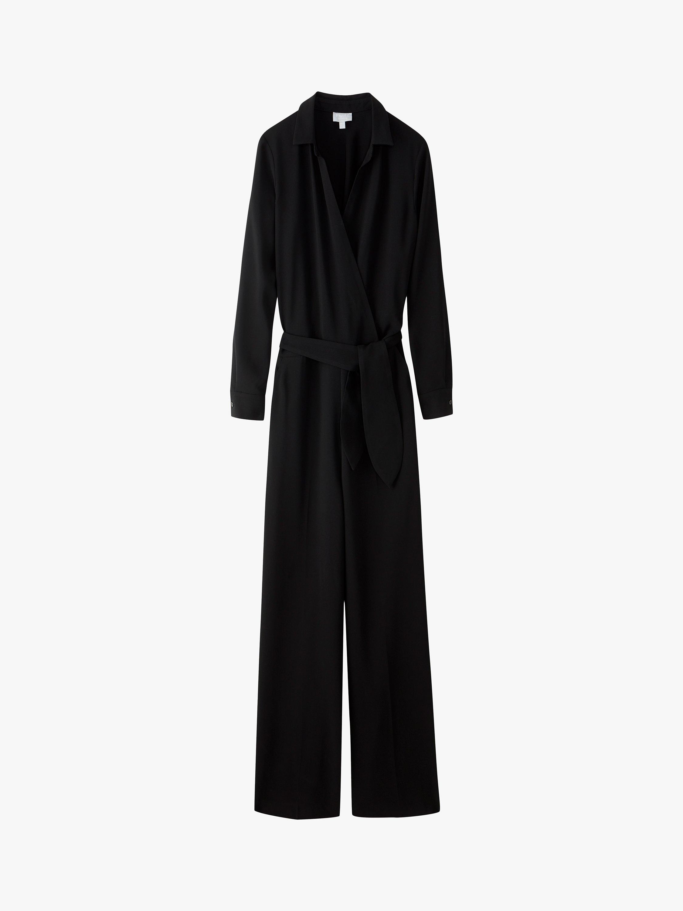 This belted jumpsuit from Pure Collection is a polished, contemporary update on the all-in-one style. Made from a drapey crepe fabric, it has smart detailing with a wrap-style bodice and collar, button cuff sleeves and stylish wide-leg trousers. Ideal for special occasions or evening events, complete the look with strap heeled sandals and a simple clutch bag.