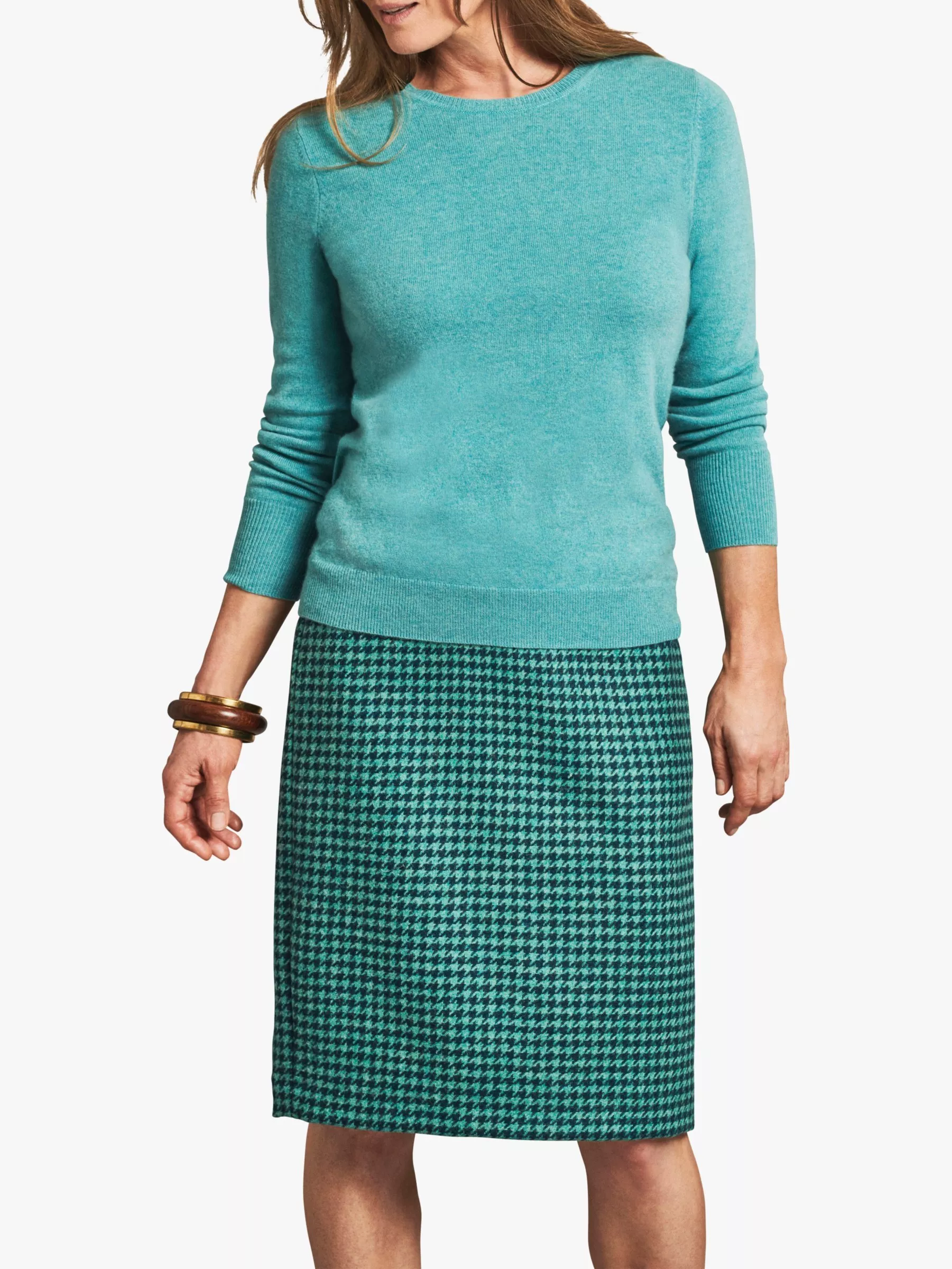 Pure Collection's bestselling luxuriously soft cashmere crew neck sweater is back for the new season. A winter favourite, the warming canvas is accented with a subtle stitch detailing and a new figure skimming shape that styles up and down effortlessly.