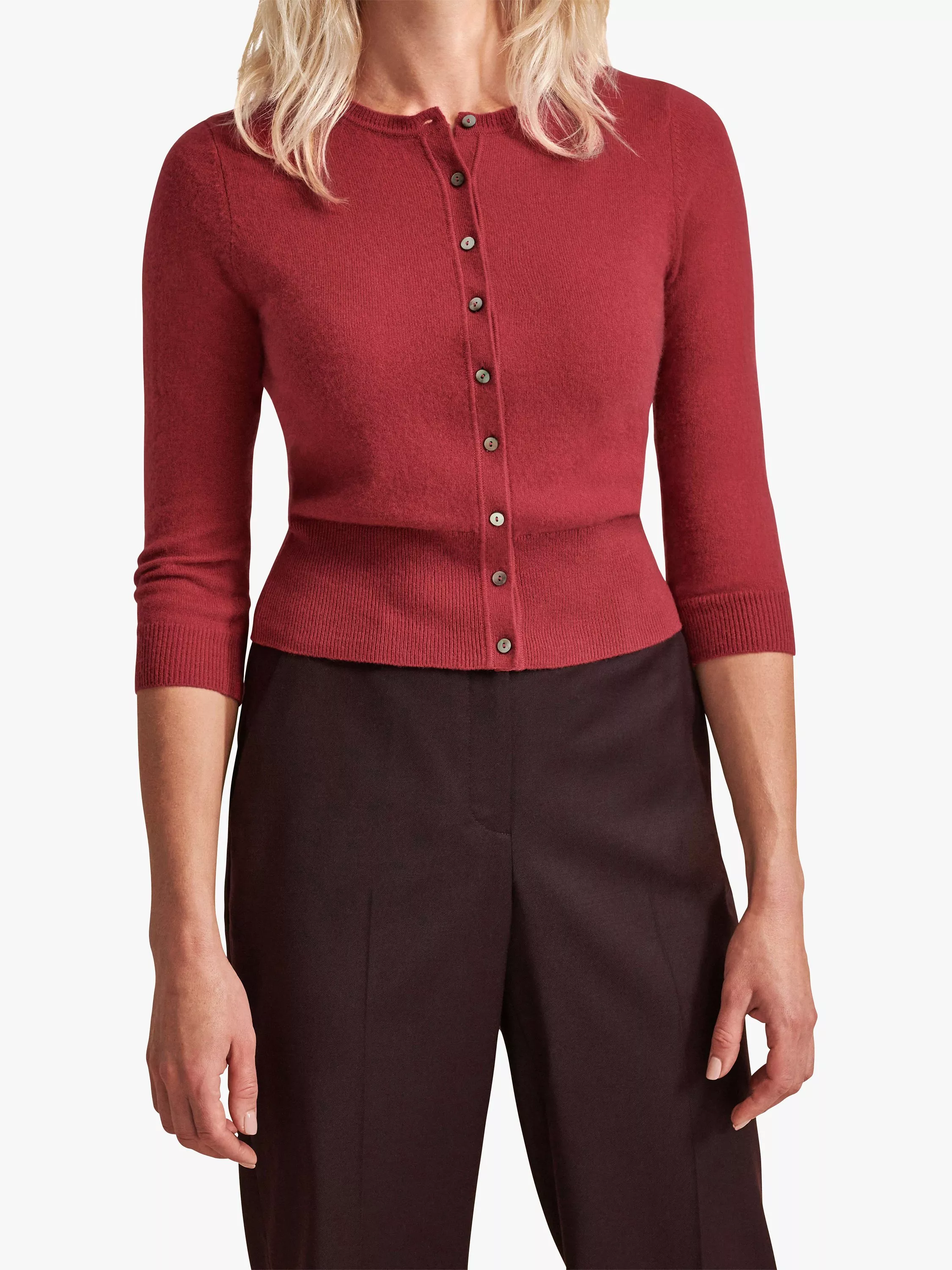 Crafted from signature cashmere, this Pure Collection cropped fitted cardigan has stylish smoked shell button details and makes an elegant addition to your everyday ensemble.