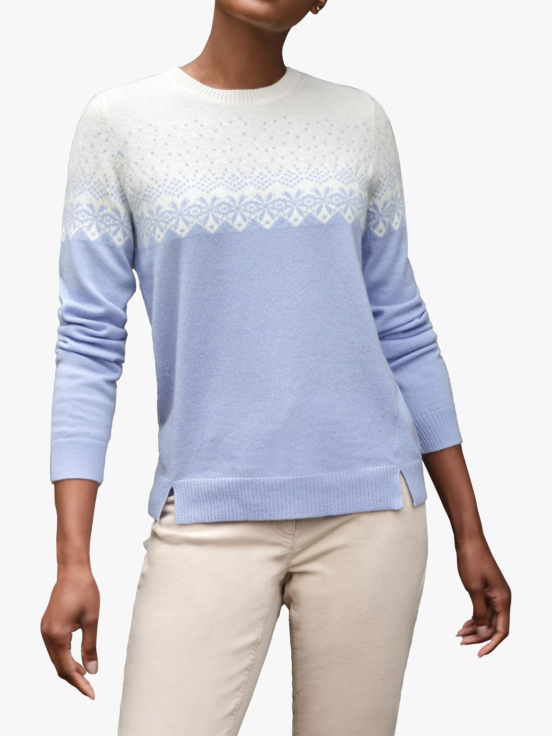 Framed with a simple round neckline, this jumper by Pure Collection showcases traditional Fair Isle embroidery and is elegantly cosy with its super light cashmere fabrication.