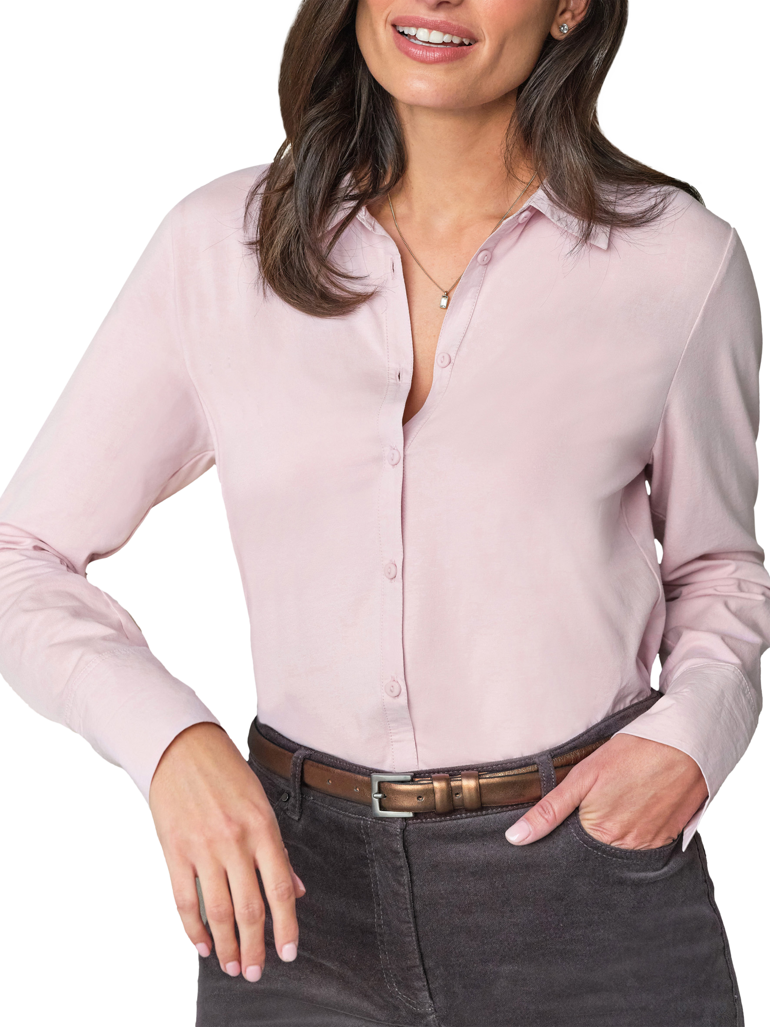 This sleek shirt has a smart silhouette that suits everything from formal events to looking chic in your day to day. Tuck it in and roll up the sleeves for more a casual look, or style under one of our cashmere crews on colder days. With a touch of elastane for added comfort.