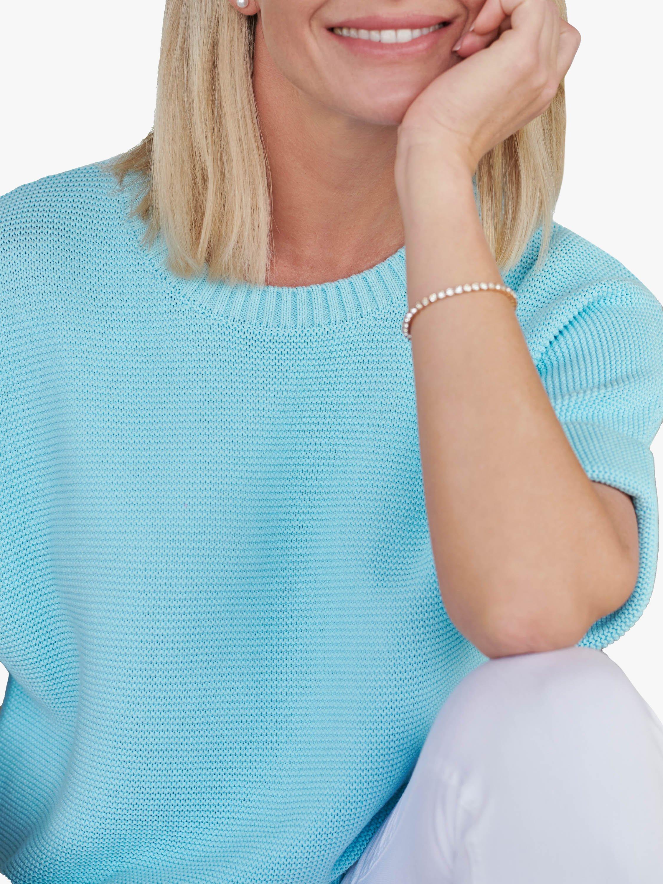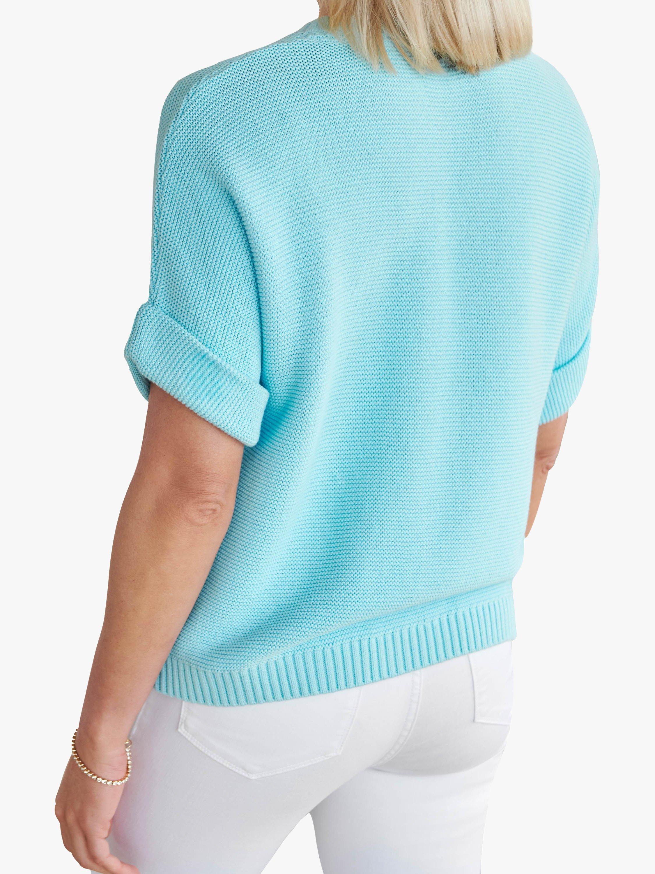 Carved with a crew neck and short sleeves with rolled cuffs, it's made from soft and breathable cotton and pairs effortlessly with floaty summery skirts for warm days spent with good friends.