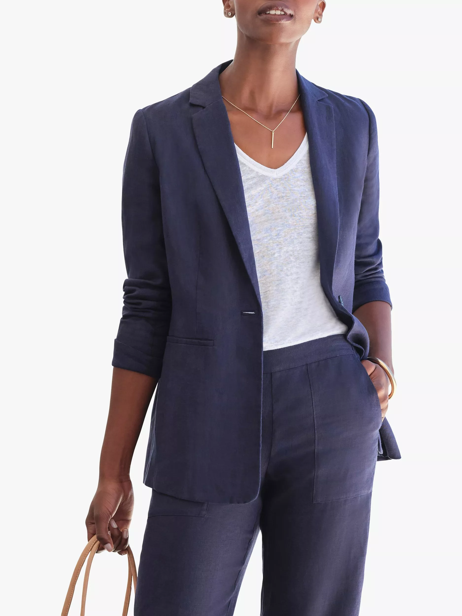 A smart outerwear piece that will pull any look together, this blazer from Pure Collection sits at the hips for practical coverage.