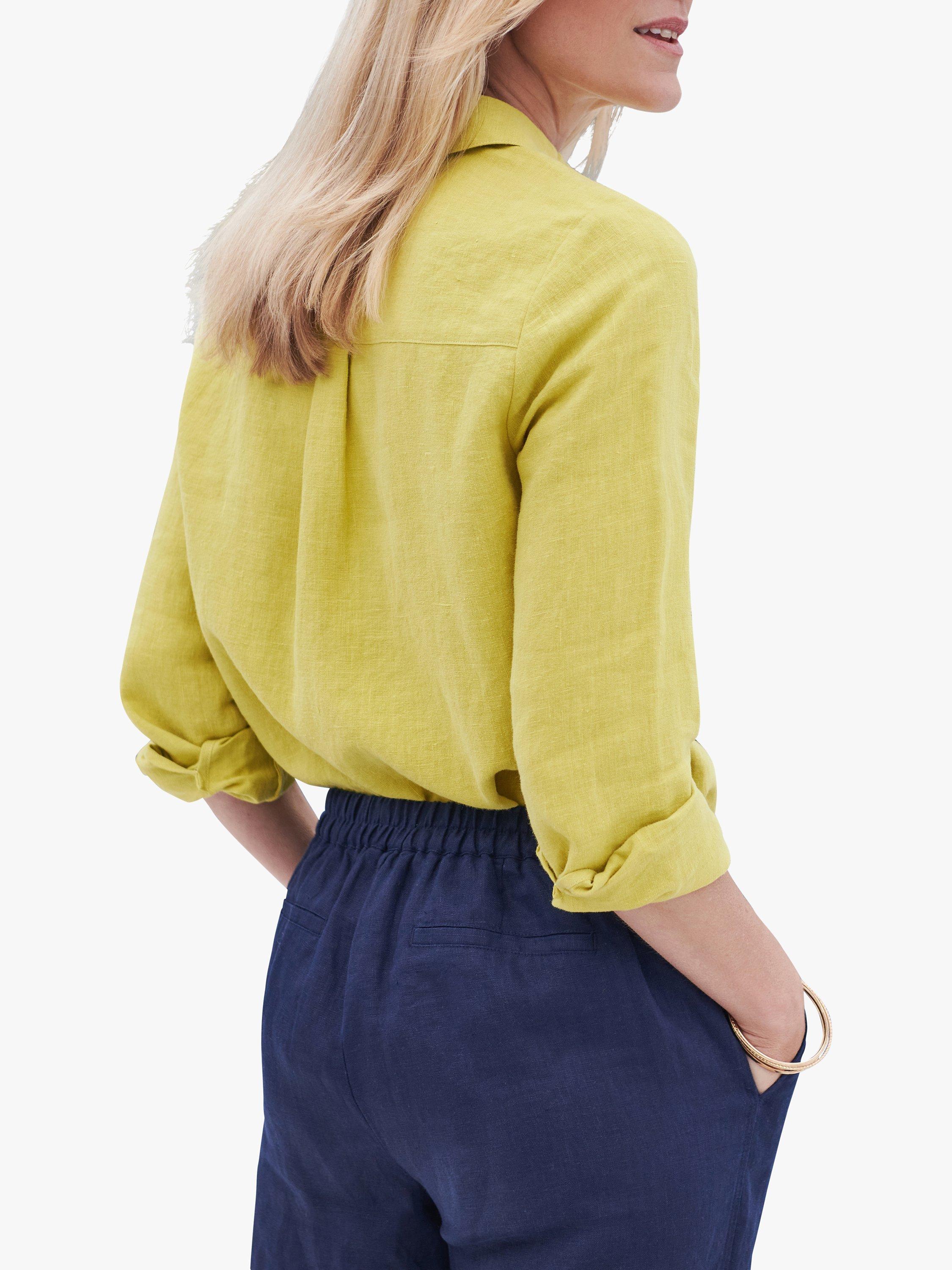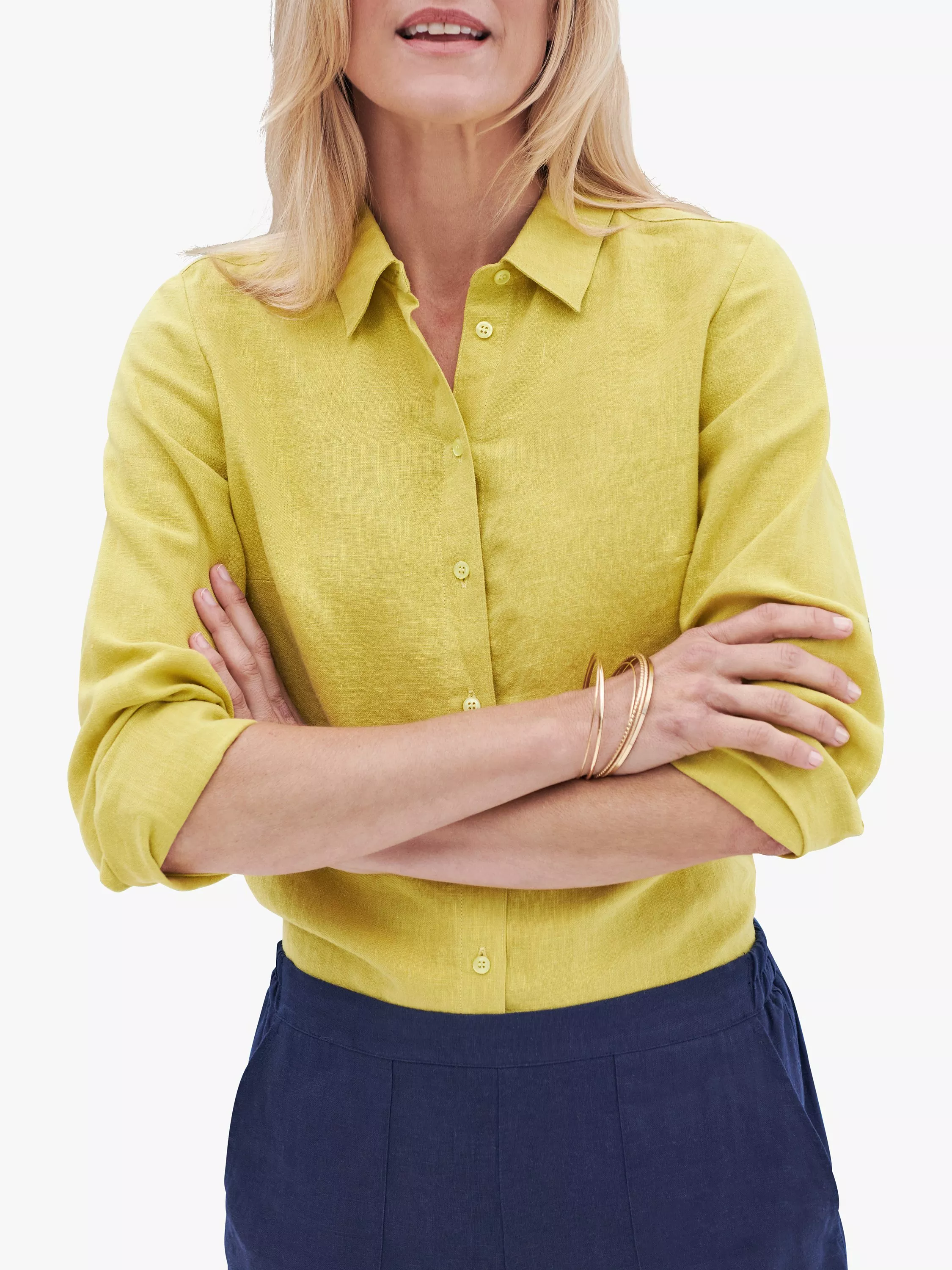 With a neat collared neck and long sleeves, it is made from pure linen, offering breathable comfort and slips on well with tonal denim ready for the summer.
