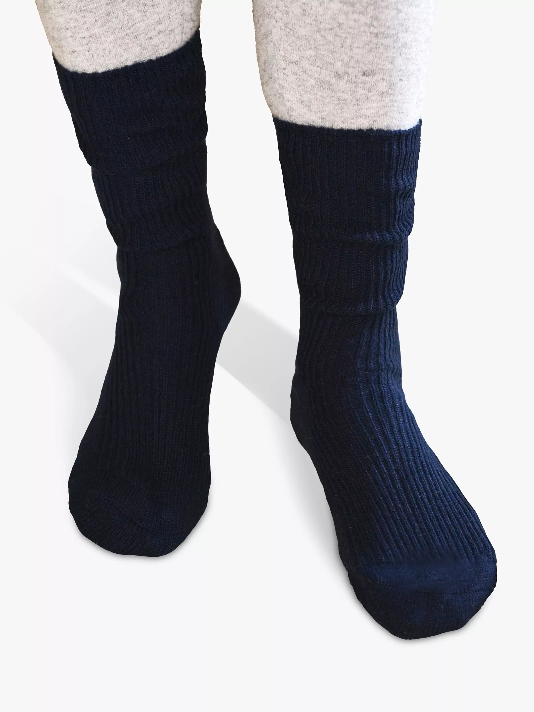 Pure CollectionRibbed Cashmere Blend Socks, Navy, One Size