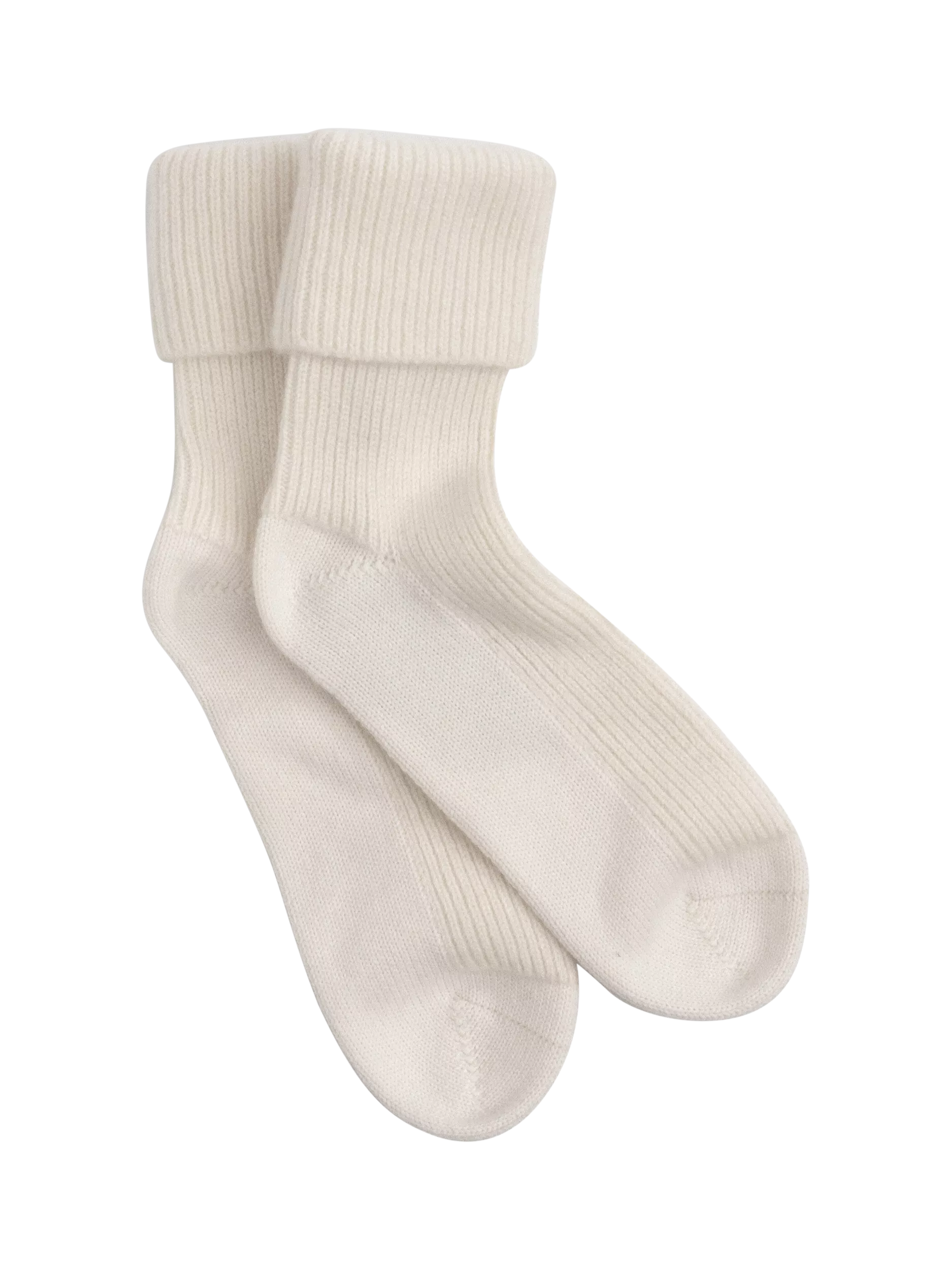 Pure CollectionRibbed Cashmere Blend Socks, Soft White, One Size