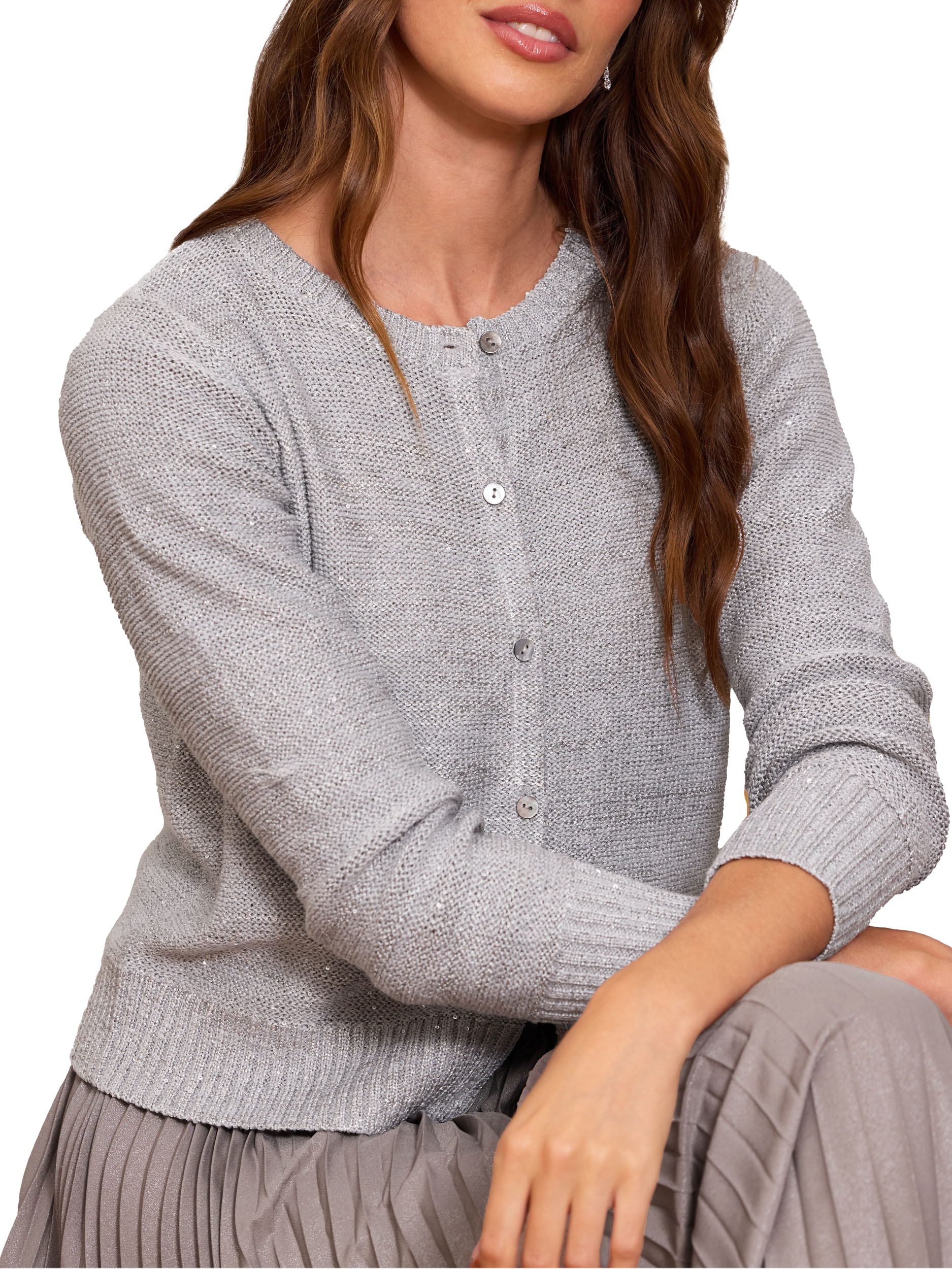 Pure CollectionSequin Crew Cardigan, Grey