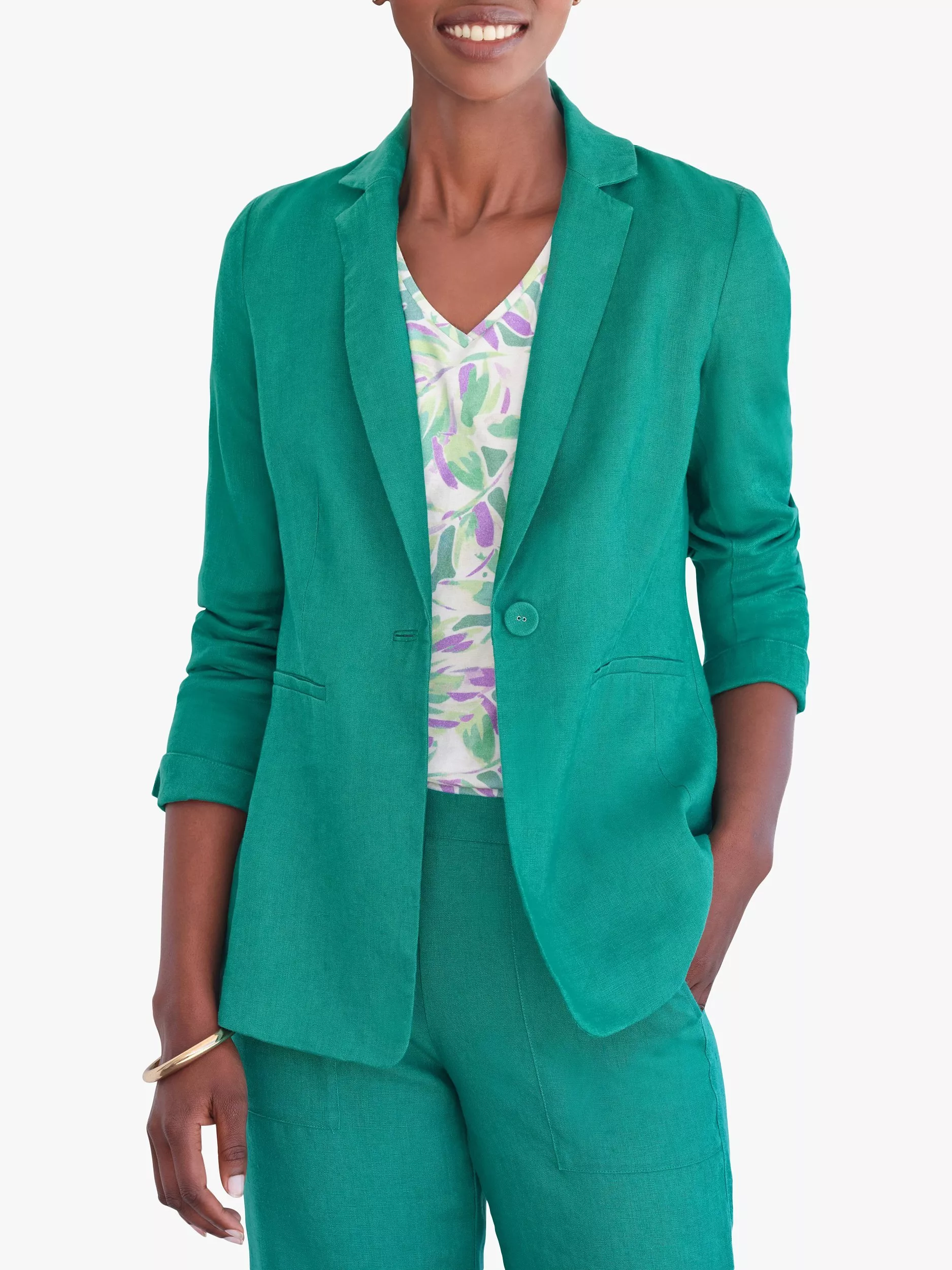 Pure CollectionSingle Breasted Linen Blazer, Jade