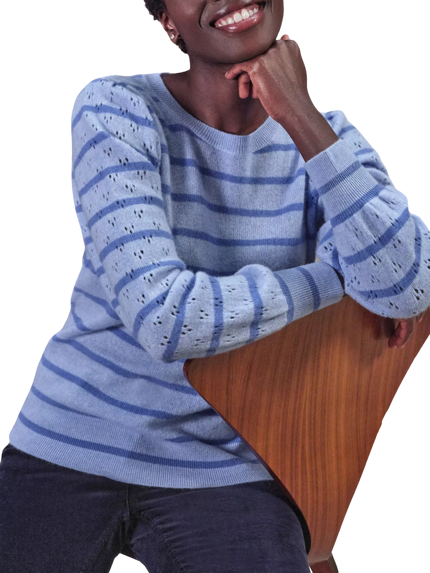 Elevate your winter wardrobe with our 100% Cashmere Fine Stripe Gassato Sweater. Crafted from the finest quality cashmere, this sweater offers exceptional warmth and softness. The classic crew neck and full-length sleeves provide a timeless look, while the fine stripe gassato pattern adds a touch of sophistication. The pointelle sleeve detail adds a delicate touch, making this sweater a versatile and stylish piece.