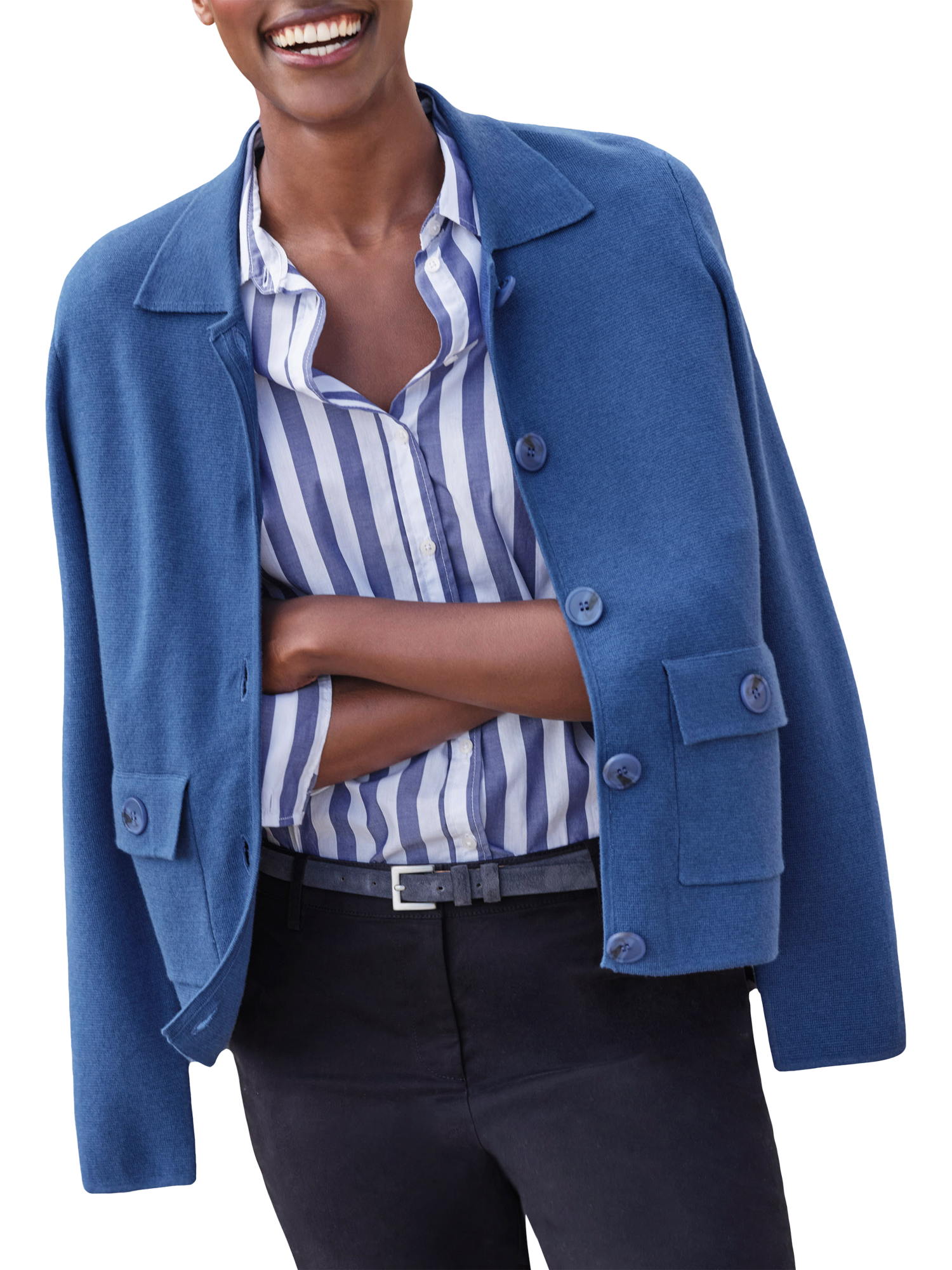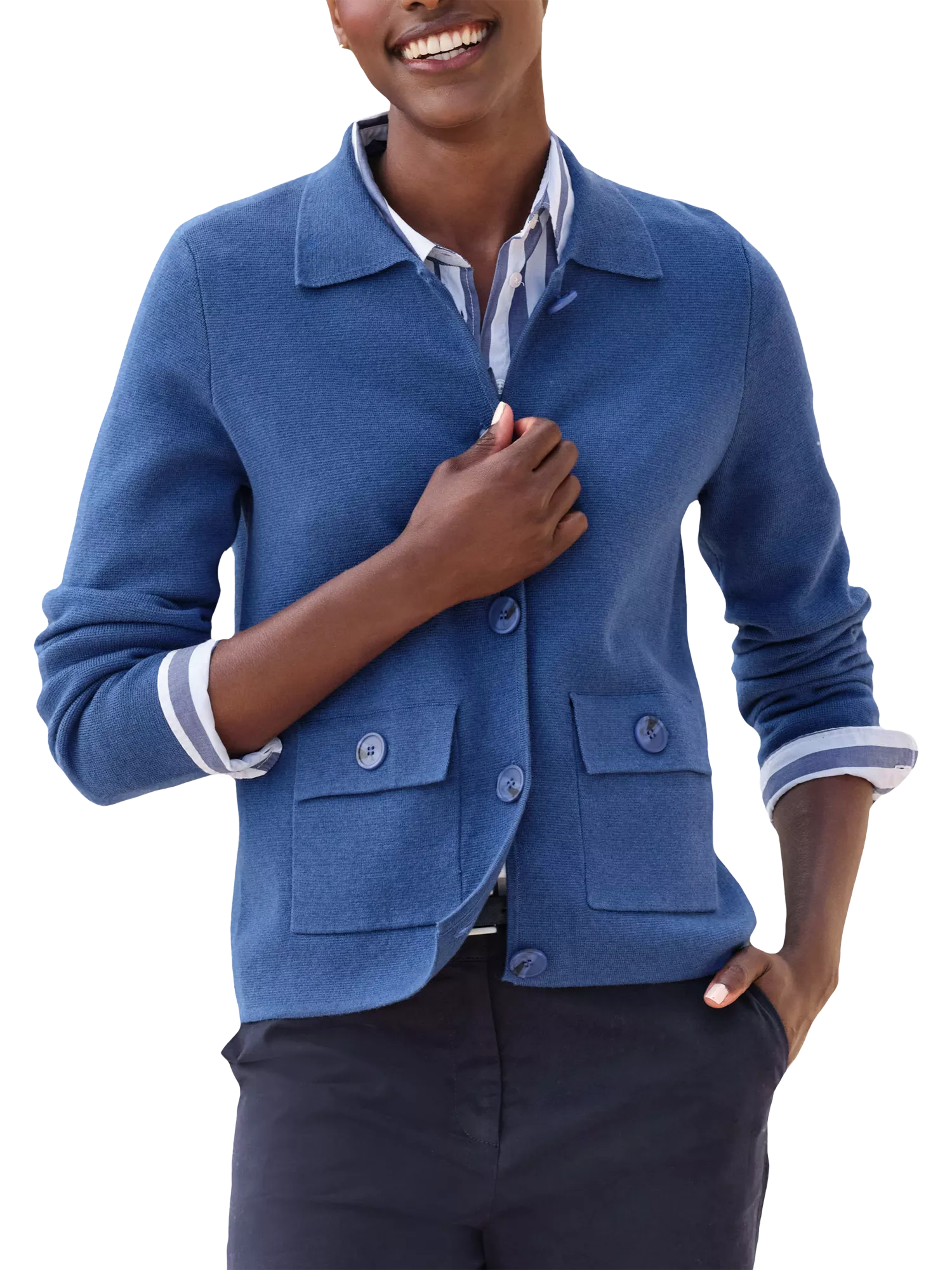Pure CollectionStructured Knit Jacket, Blue