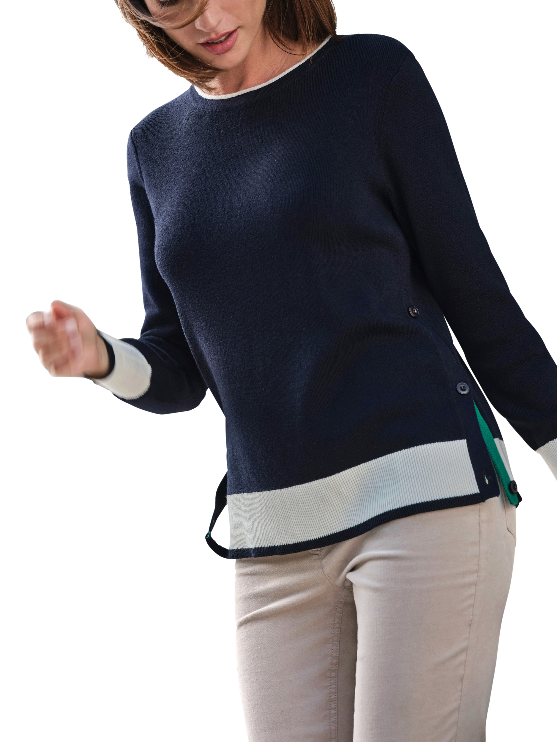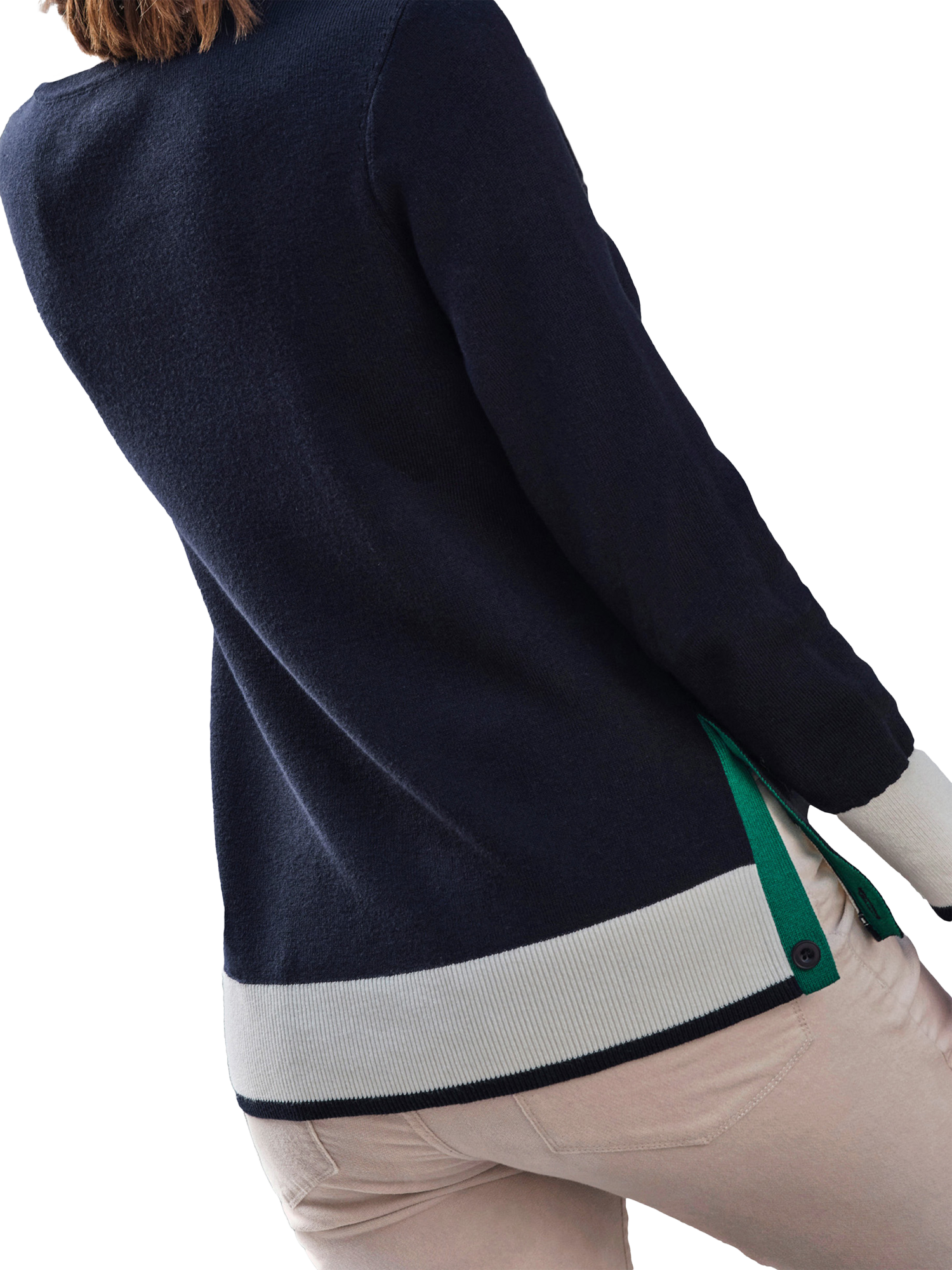 Pure CollectionTipped High Neck Jumper, Navy/White
