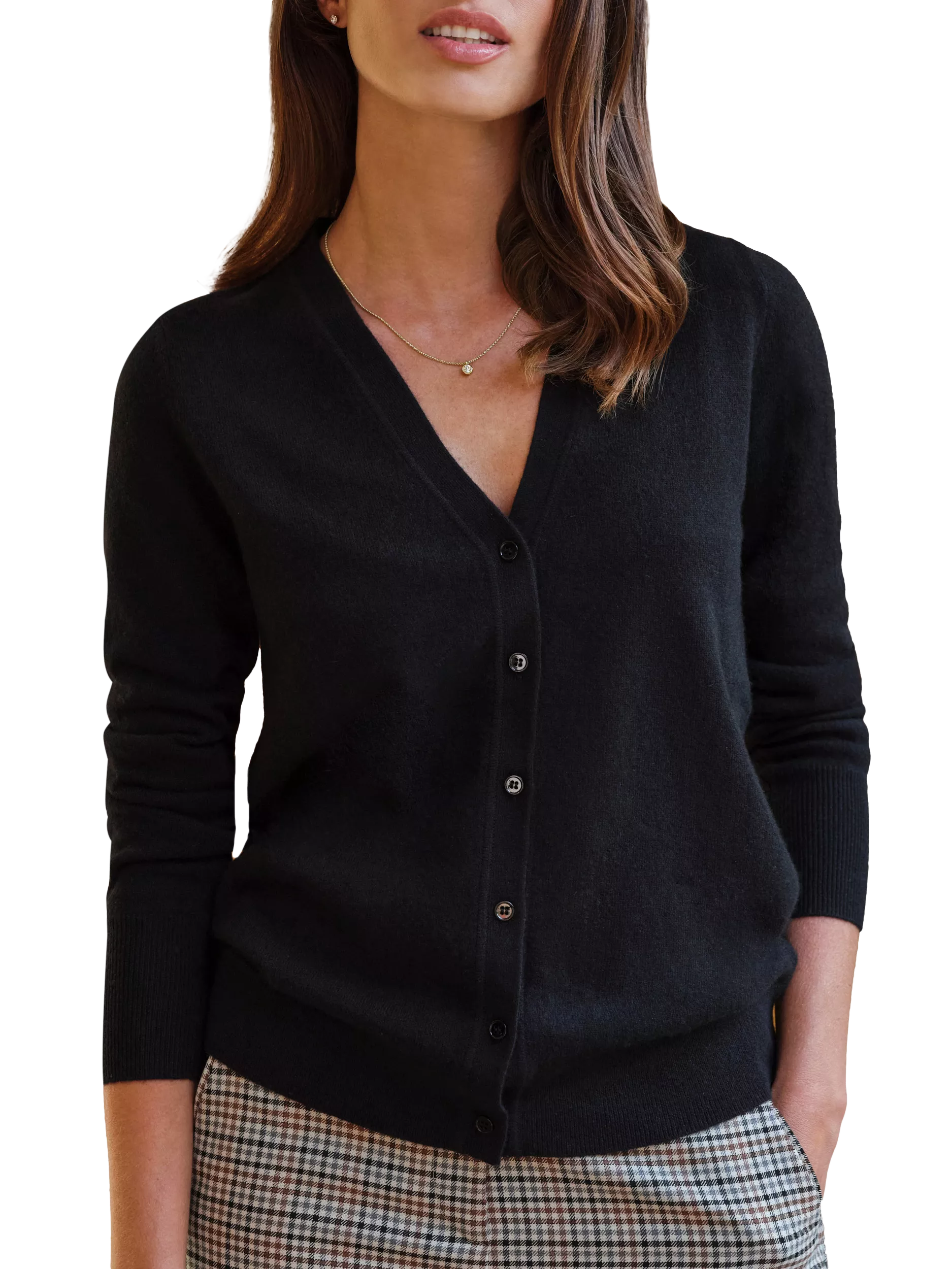 Pure Collection's cashmere cardigan is a firm favourite. With a flattering V-neck and classic fitted shape, it's detailed With mother of pearl button fastening and is machine washable - perfect for easy care.