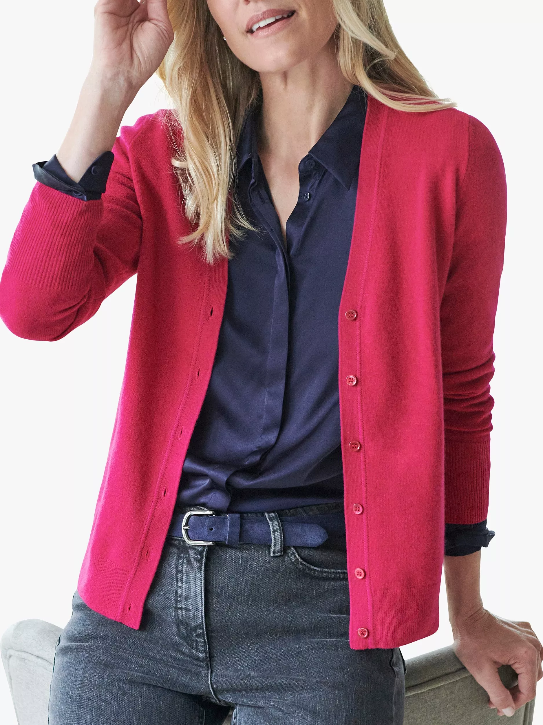 Pure Collection's cashmere cardigan is a firm favourite. With a flattering V-neck and classic fitted shape, it's detailed With mother of pearl button fastening and is machine washable - perfect for easy care.