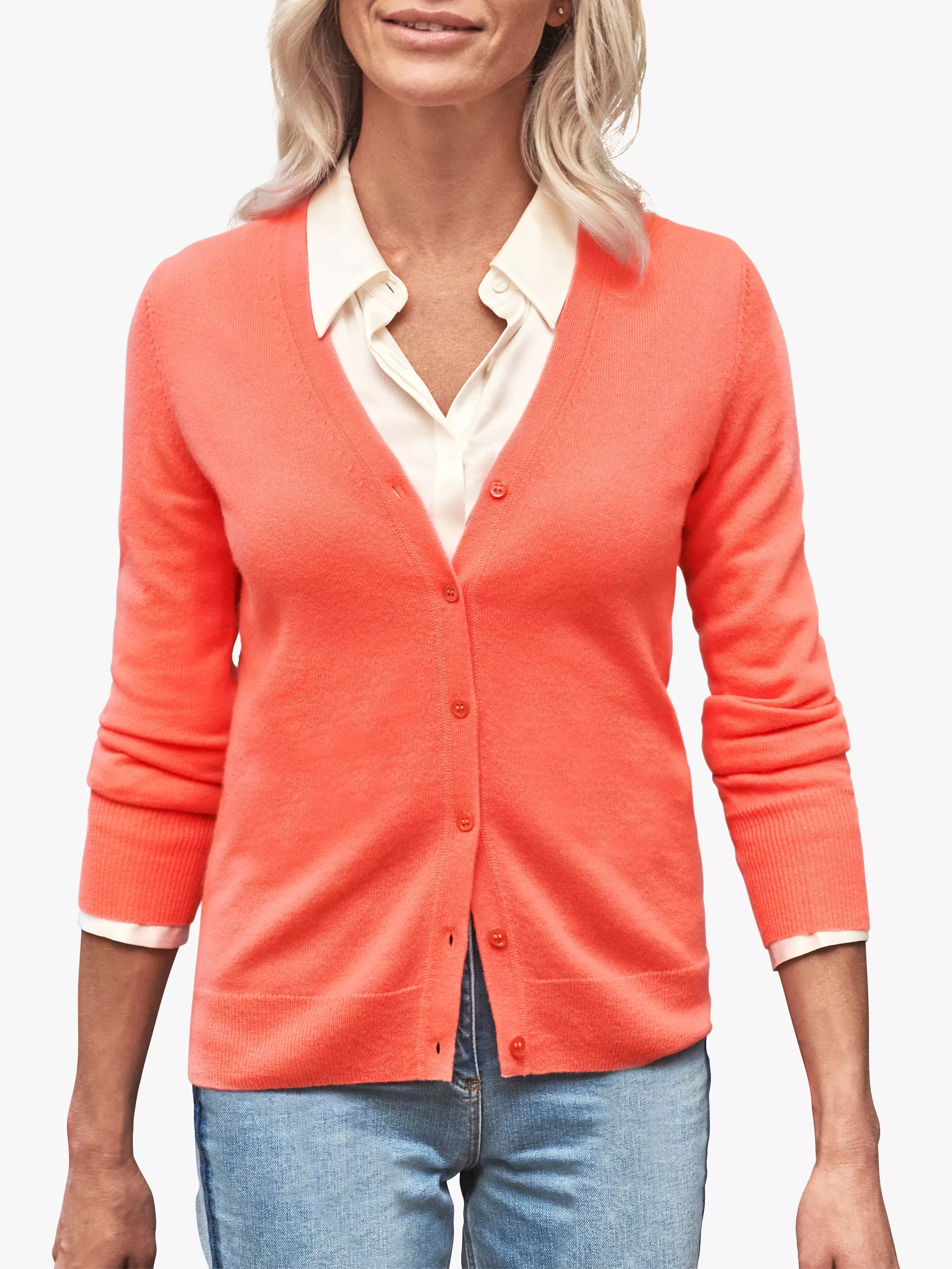 Pure Collection's cashmere cardigan is a firm favourite. With a flattering V-neck and classic fitted shape, it's detailed With mother of pearl button fastening and is machine washable - perfect for easy care.