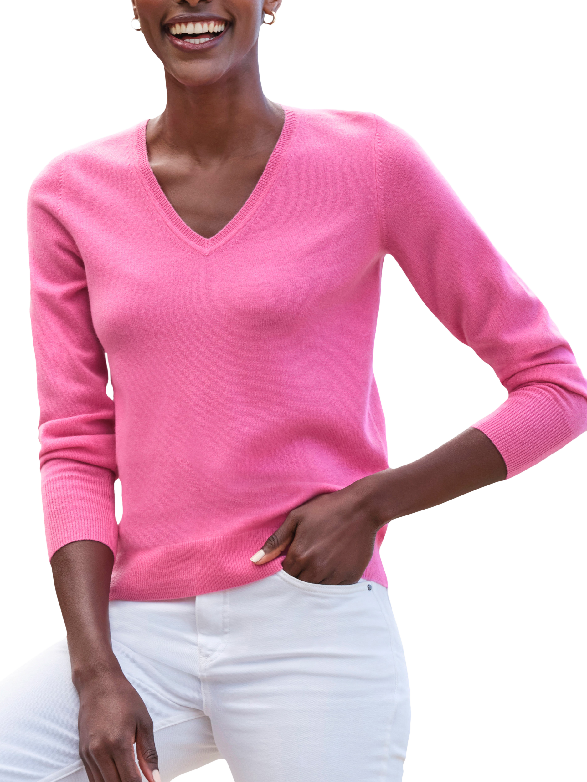 Pure CollectionV-Neck Pure Cashmere Jumper, Pink Camellia