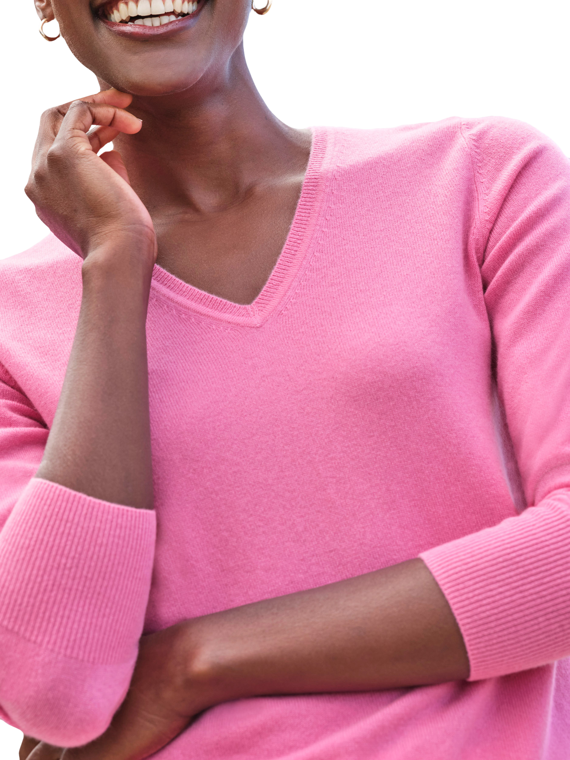 Our luxuriously soft cashmere v neck sweater is a best-selling favourite, with a subtle stitch detailing and figure skimming shape that styles up and down effortlessly.