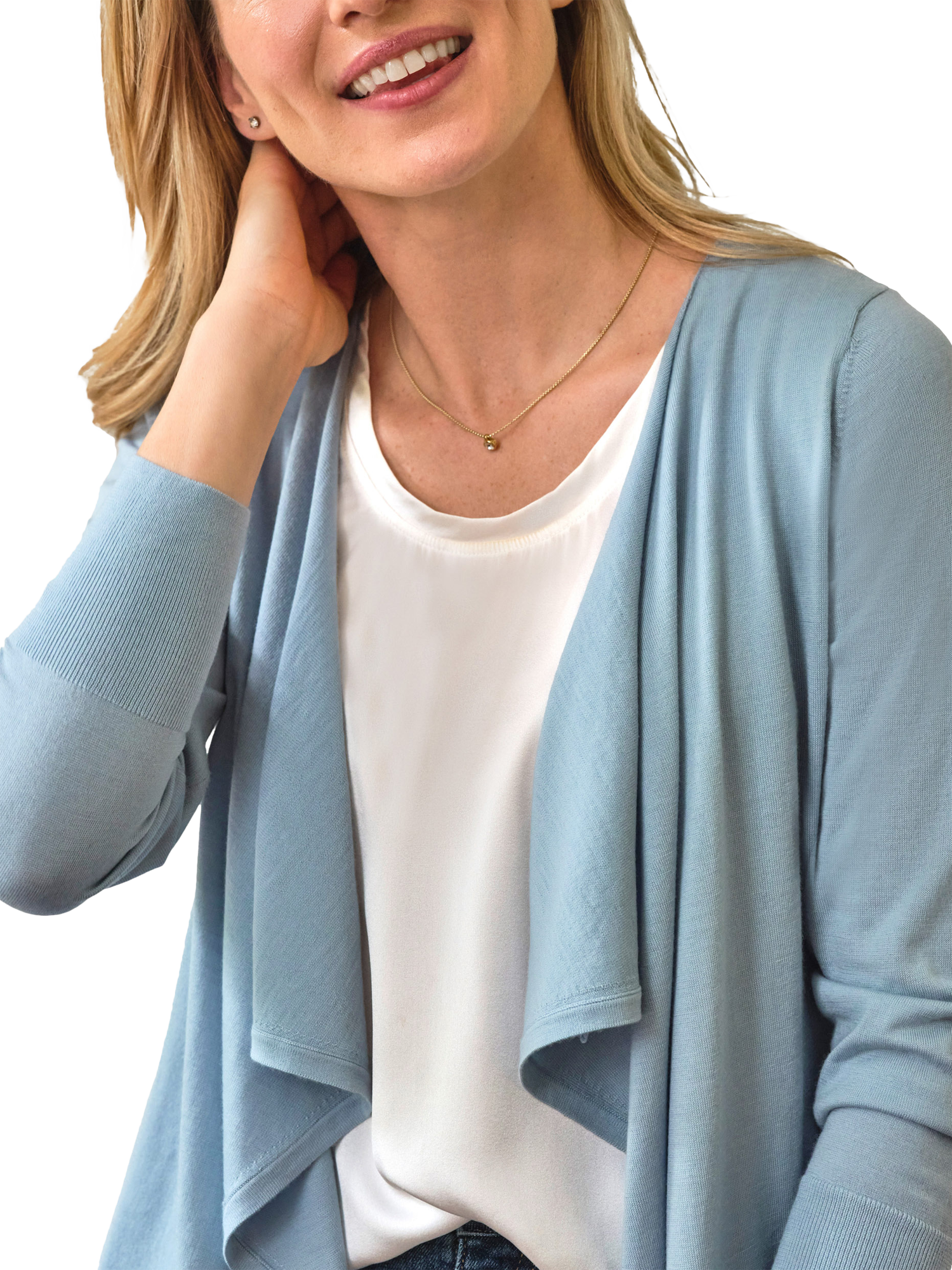 Pure CollectionWaterfall Wool Rich Cardigan, Seaspray