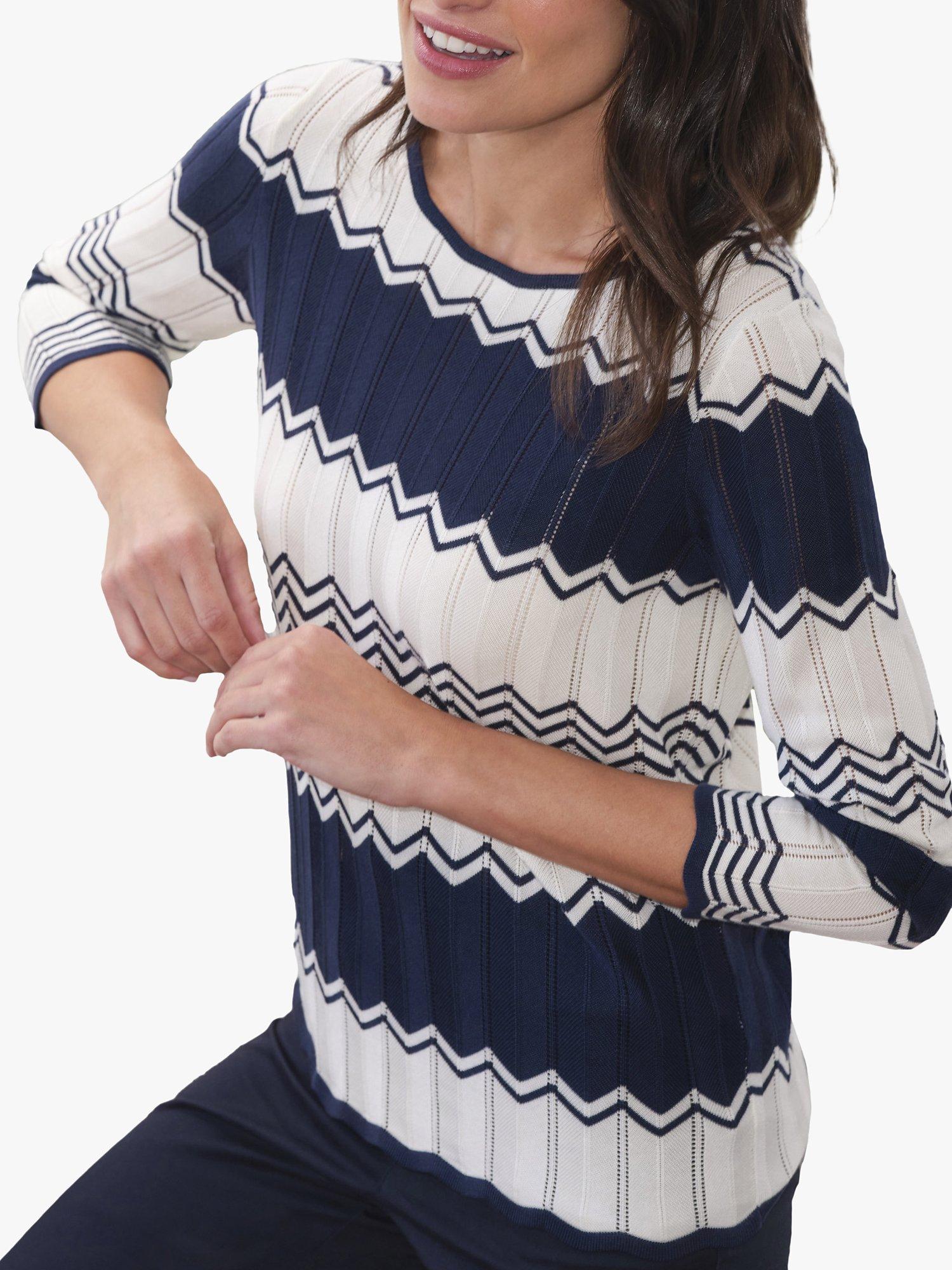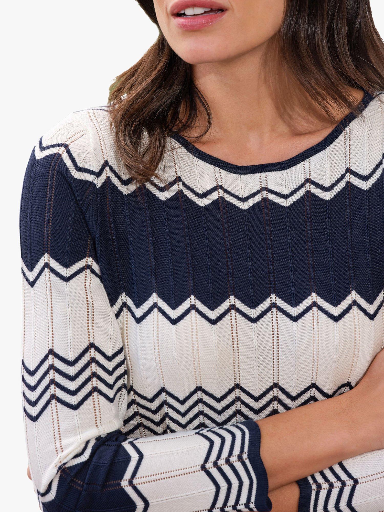 Pure CollectionZig Zag Knit Jumper, Navy/Ivory