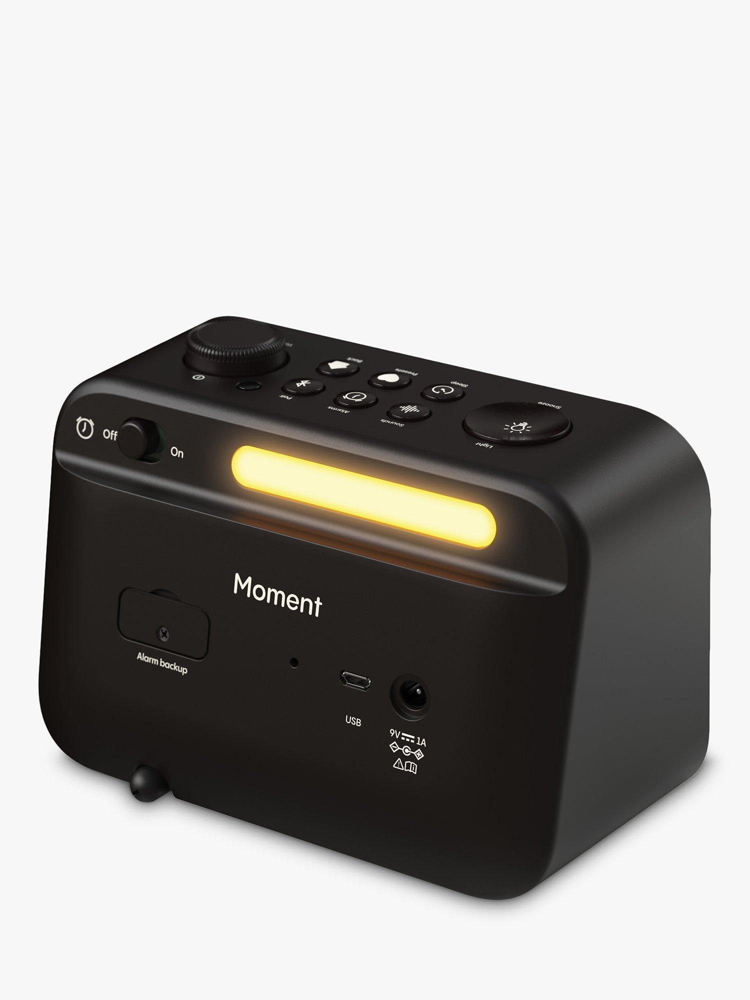 Moment is your ultimate audio companion designed to enhance your sleep hygiene and overall well-being. This modern device combines DAB+, FM, and Bluetooth 5.3 connectivity with soothing natural sounds, a fully dimmable night-light, and customisable alarms, including a sunrise feature.