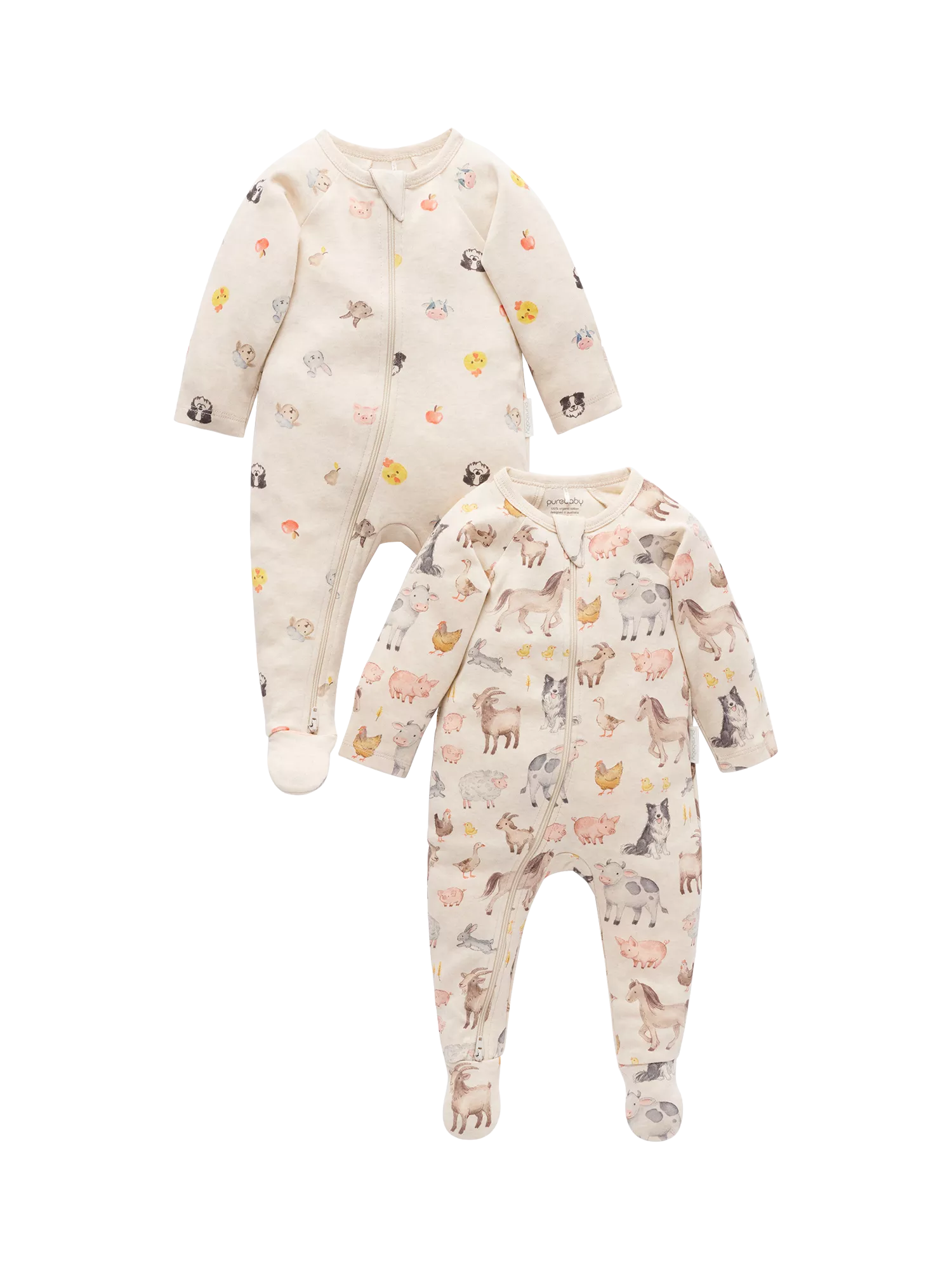 Purebaby's best-selling Zip Sleepsuit is now available in limited edition prints. This 2-pack of zip sleepsuits features two growsuits, covered in exclusive Purebaby illustrated prints. Made from the softest cotton, featuring a two-way zip for easy changes.