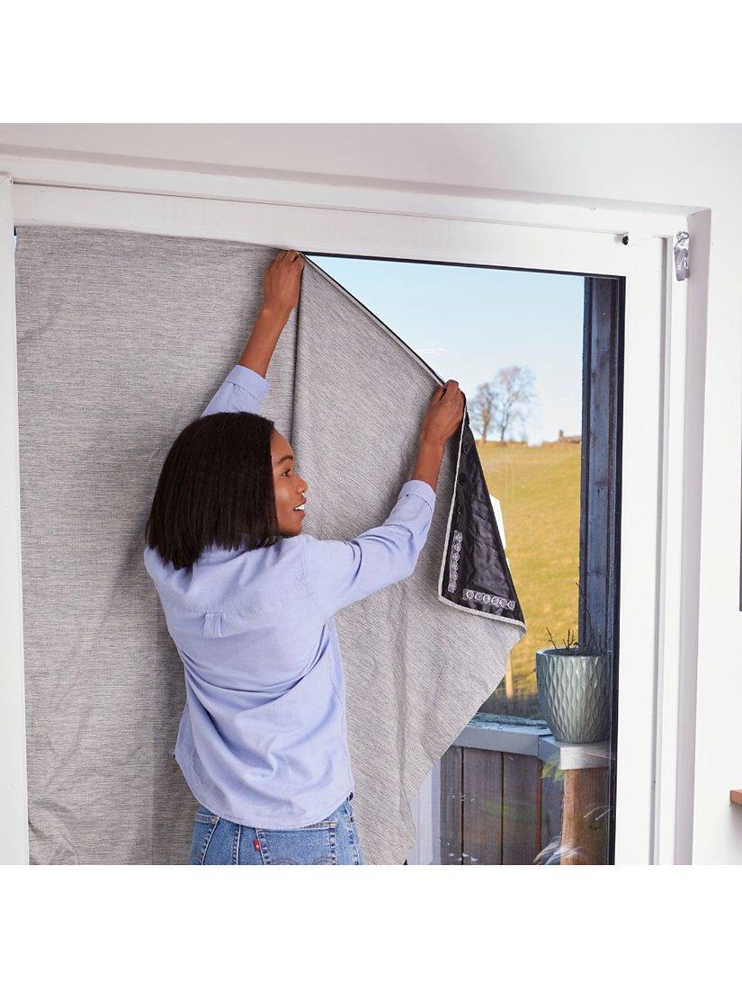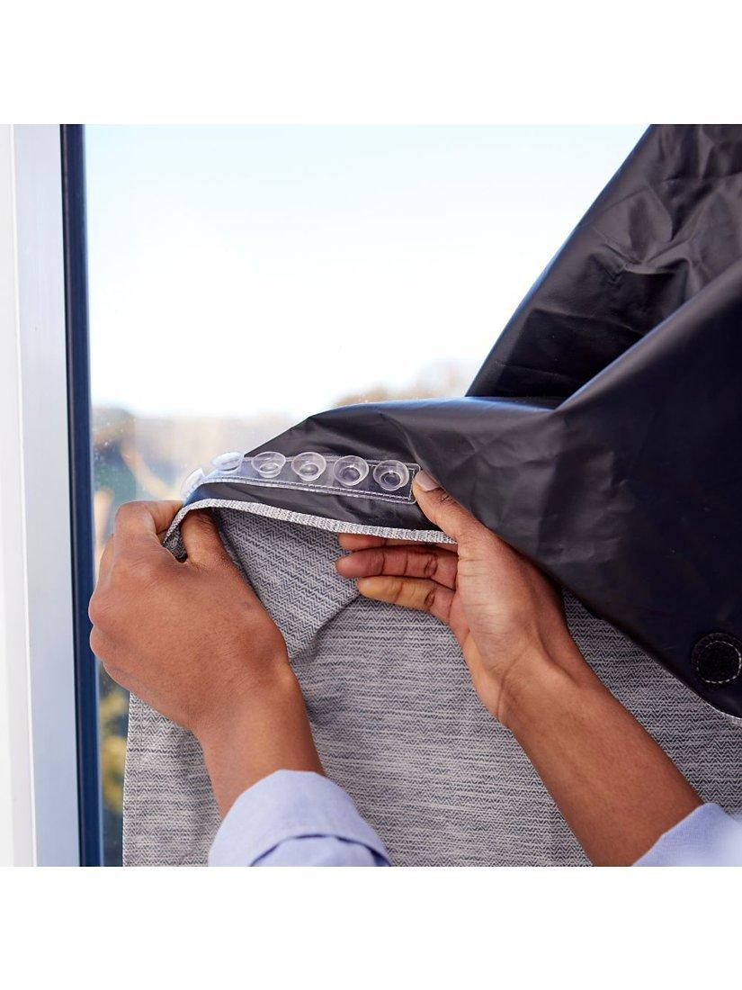 Home or away, this stylish blackout blind keeps the light out and nighttime in. Made from a soft herringbone printed facing material to suit all decor, the back has over 100 suckers on easy-fit strips to adhere quickly and securely to your window. The blind can be made bigger or smaller with the velcro pads and there's an integrated pocket to pack the product away for easy storage and travel.