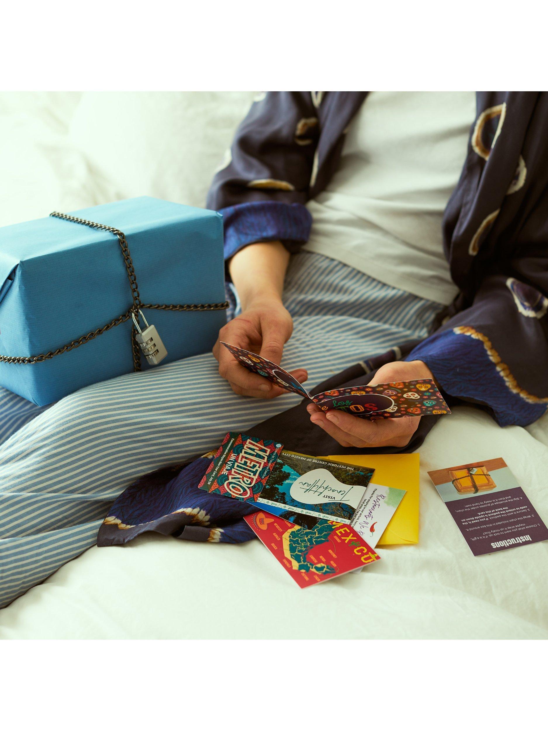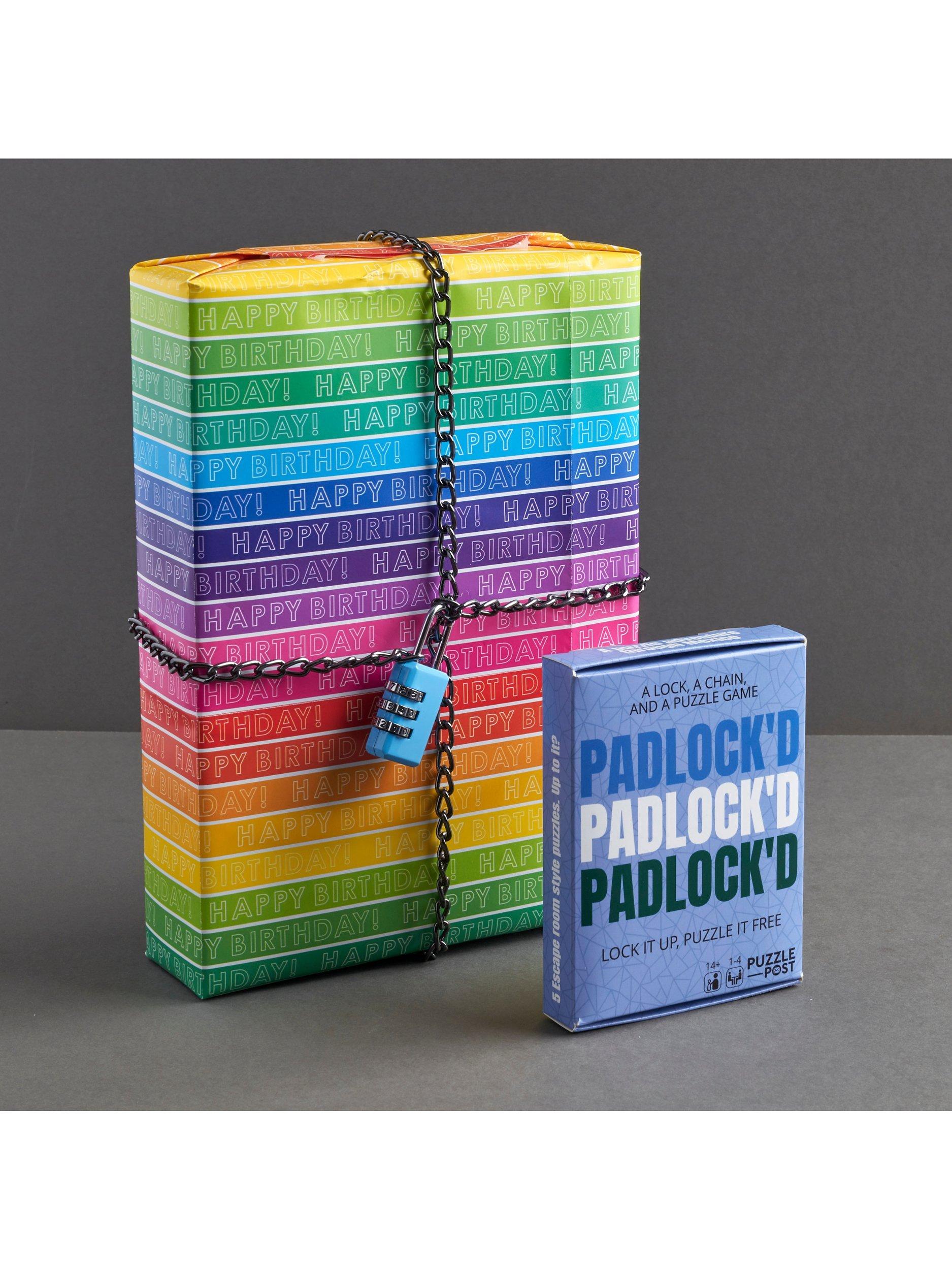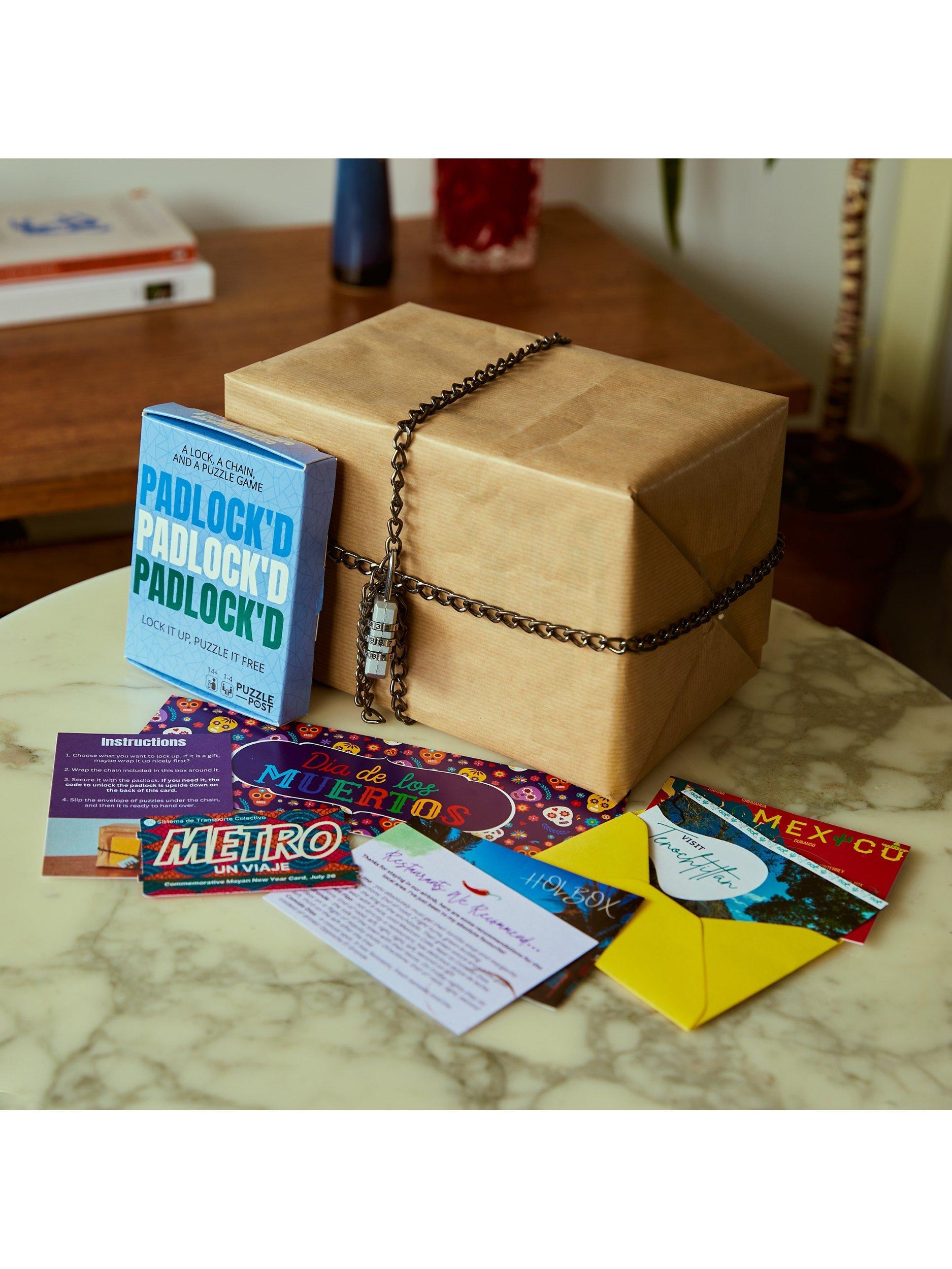 How it works: Use the lock and chain to secure something (a gift, a door, the wine cupboard ), solve the puzzles to reveal the lock combination and unlock the padlock!