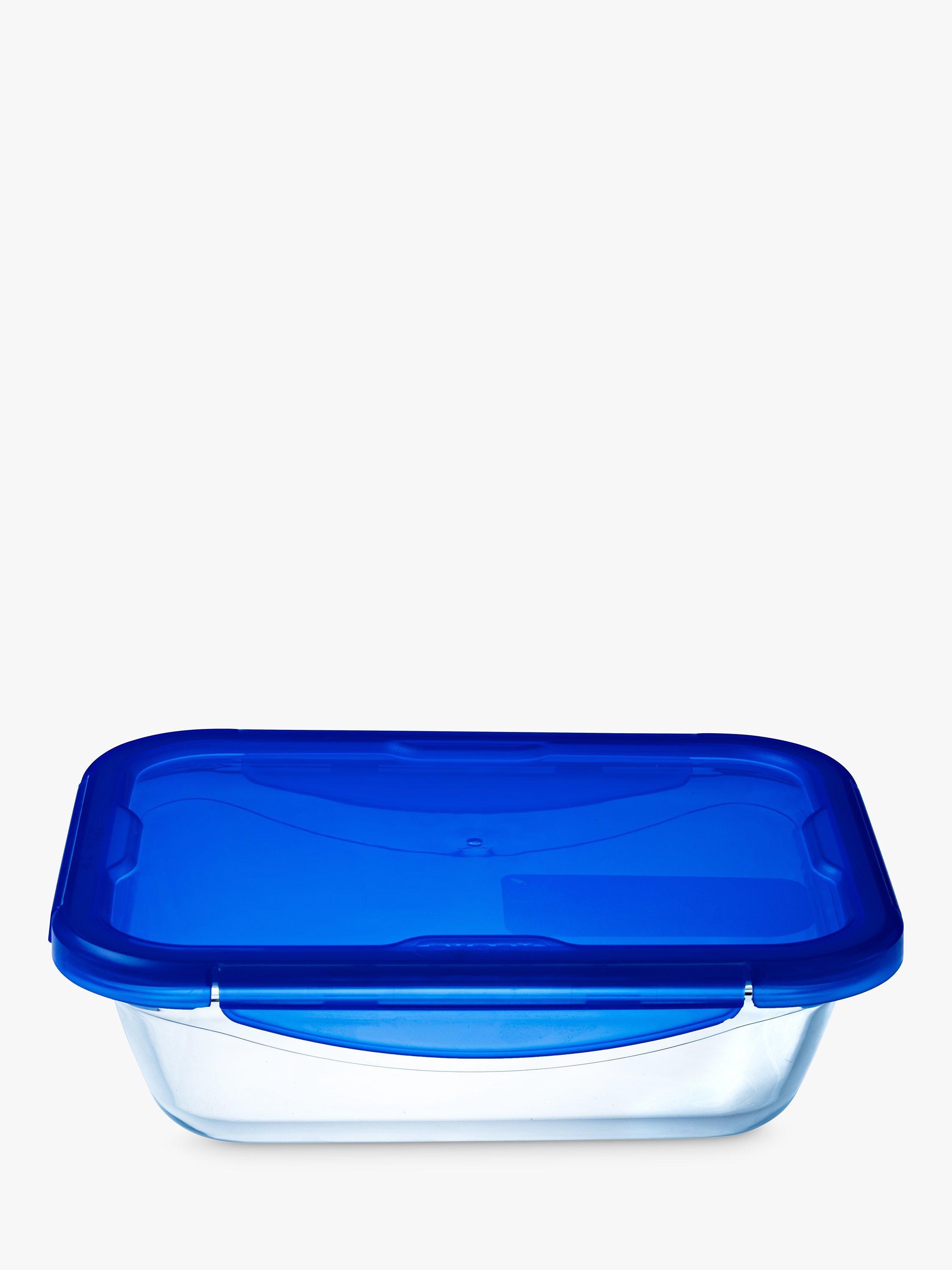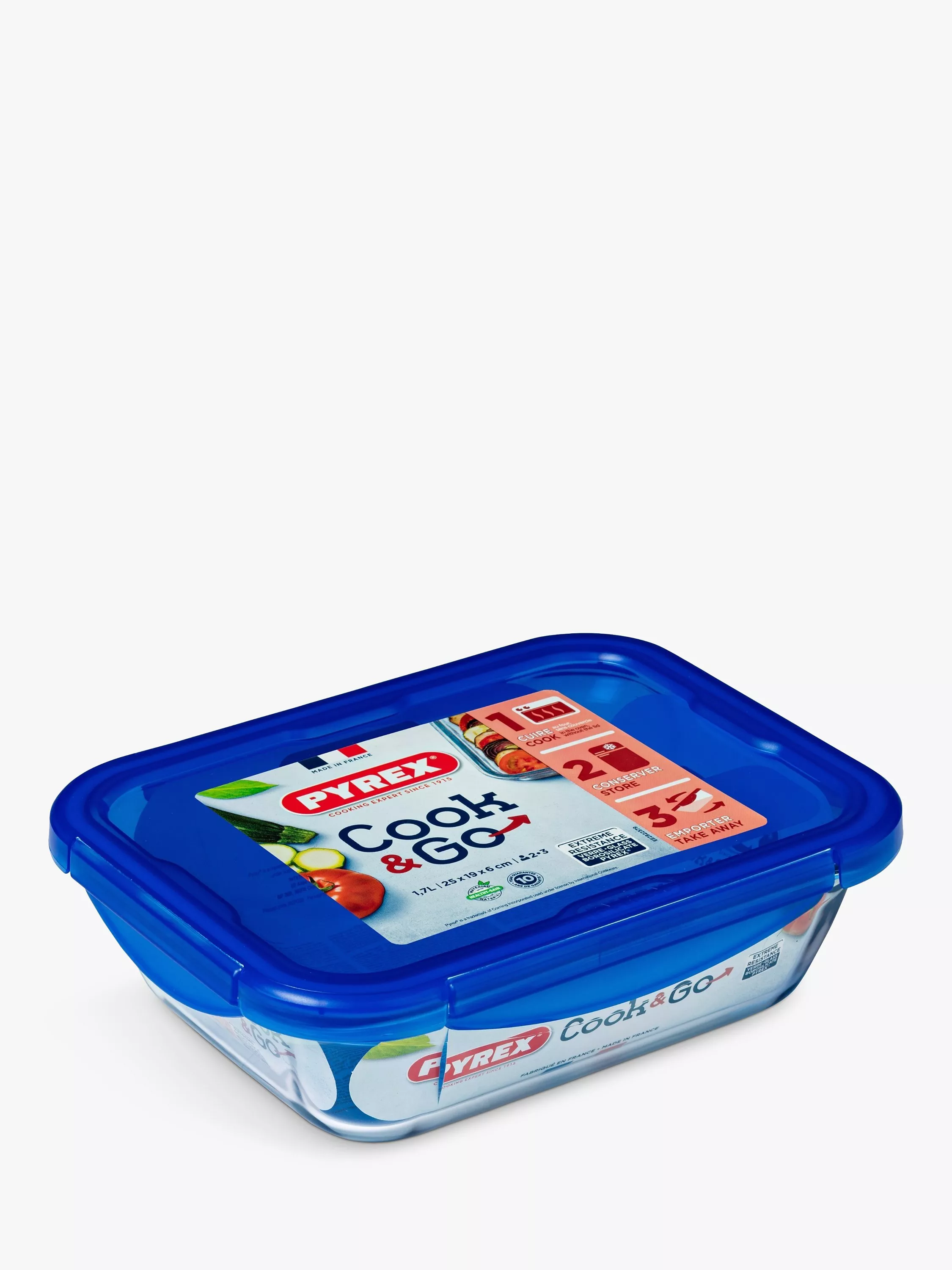 A Pyrex® Cook & Go rectangular dish for heating up food in the oven or microwave. This container comes with an airtight and leak-proof lid for keeping food fresh for longer and for transporting meals with no risk of leaks. The pot is thermal shock resistant up to 220°C so it can go straight from the fridge into the oven.