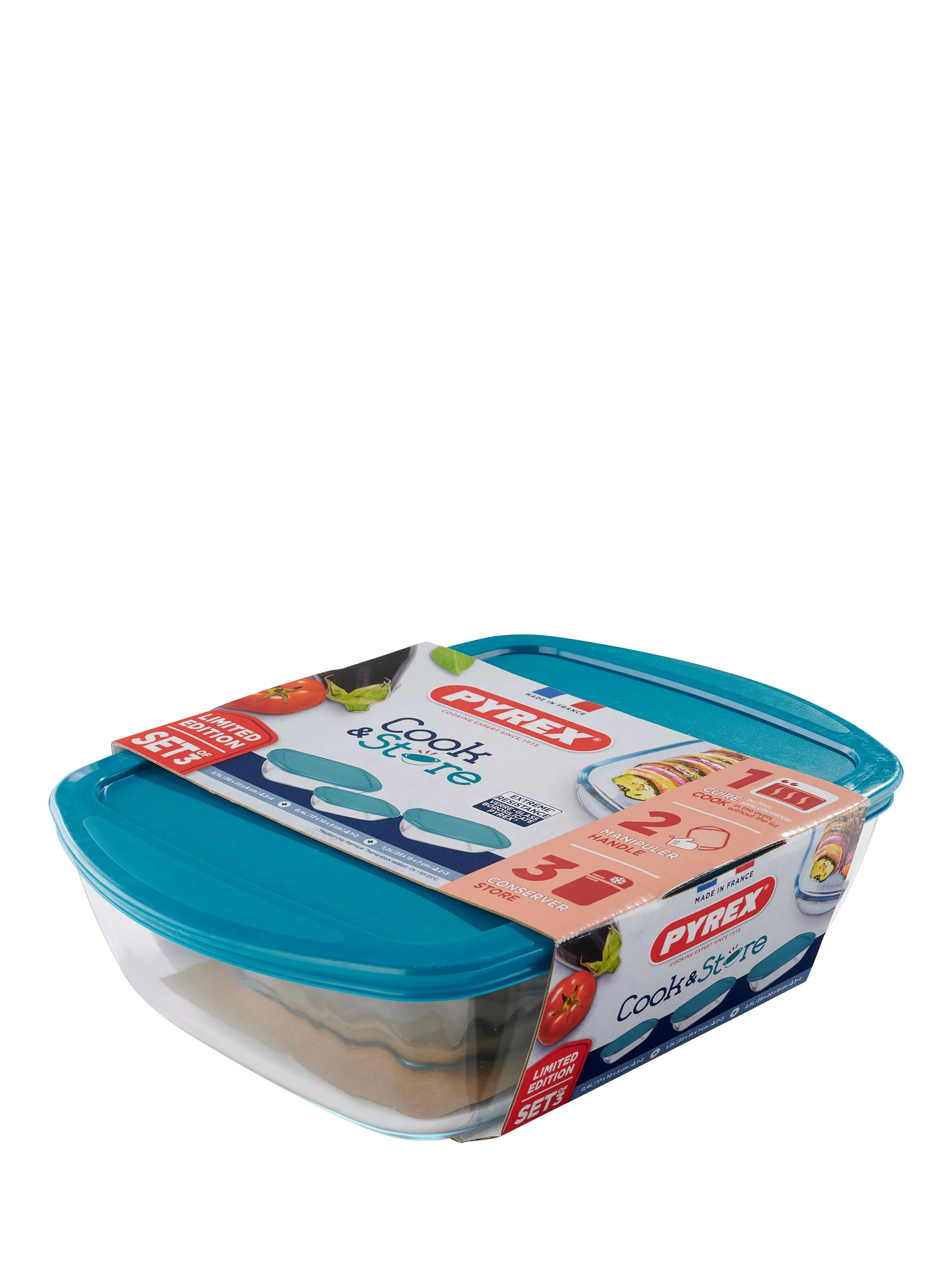 PyrexCook & Store Glass Dish Set, 3 Piece, Teal