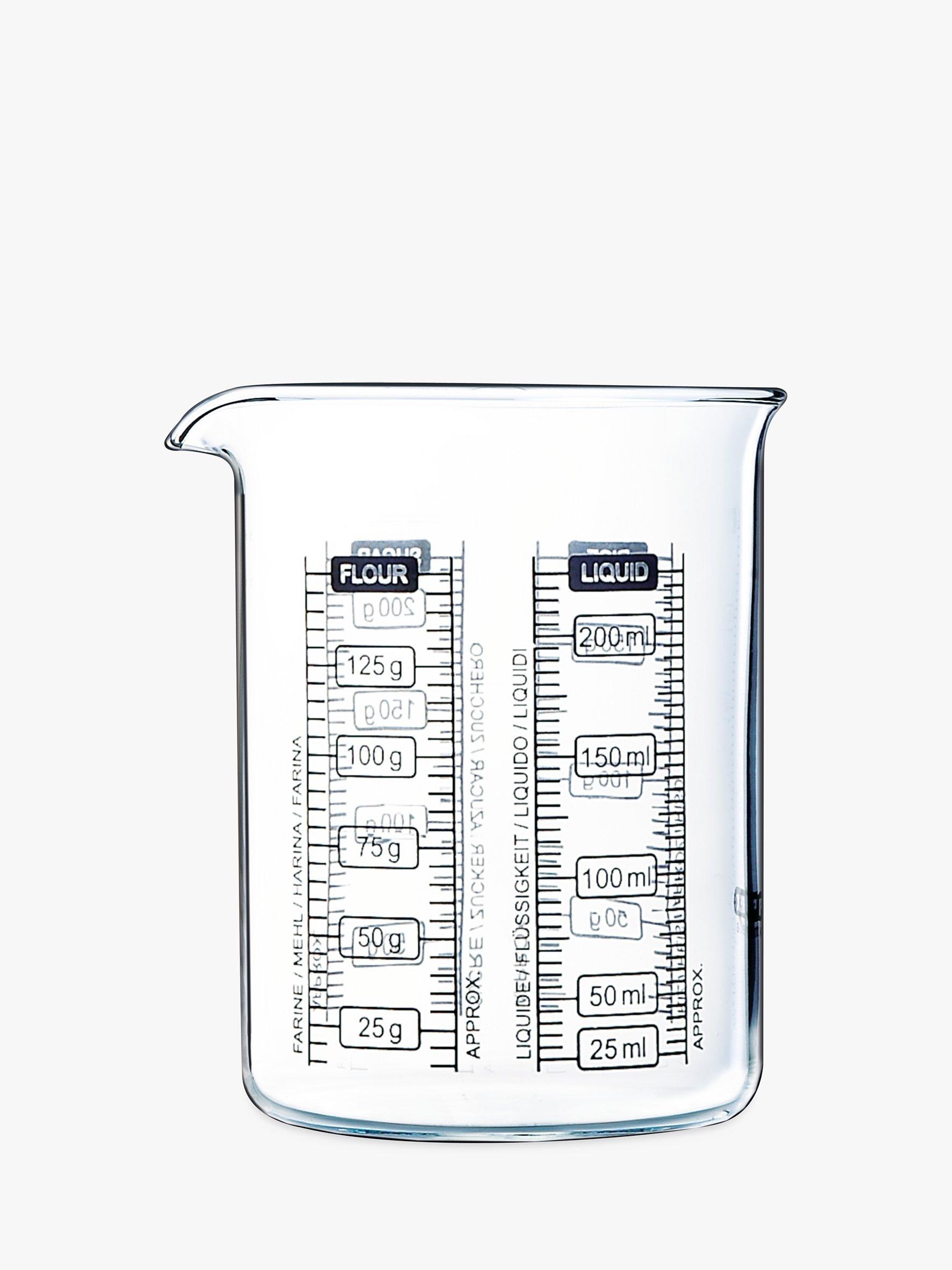 This practical mixing utensil from Pyrex has dry and liquid measuring scales on each side so that you can accurately measure, mix your ingredients and then serve.