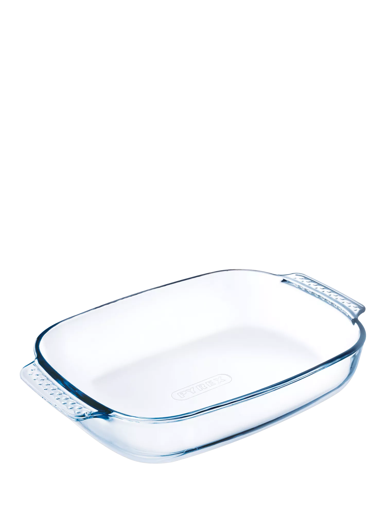 Two-piece set of rectangular roasters, a must-have for the kitchen in Pyrex's borosilicate glass. The wide handles and generous depth of these ultra-practical dishes make them indispensable partners in your kitchen, whether sweet or savoury, your culinary creations will shine.