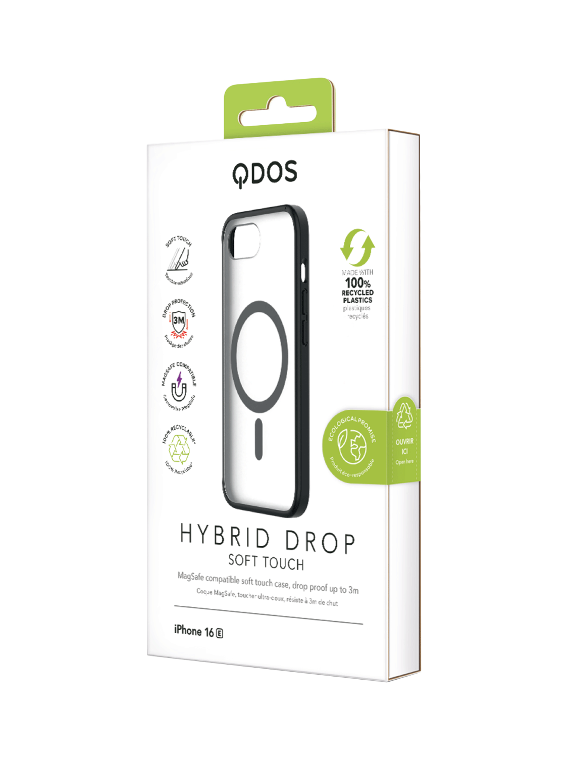 The Hybrid Dop Soft Touch case is a super-soft, frosted Magsafe compatible case, designed from recycled materials. With reinforced corners, it withstands drops from up to 3 metres (MIL-STD-810G standard). Slightly raised edges around the screen and camera lens helps to avoid scratches, and it's coated in an anti-yellowing treatment developed to prevent discoloration. Compatible with wireless charging, too.
