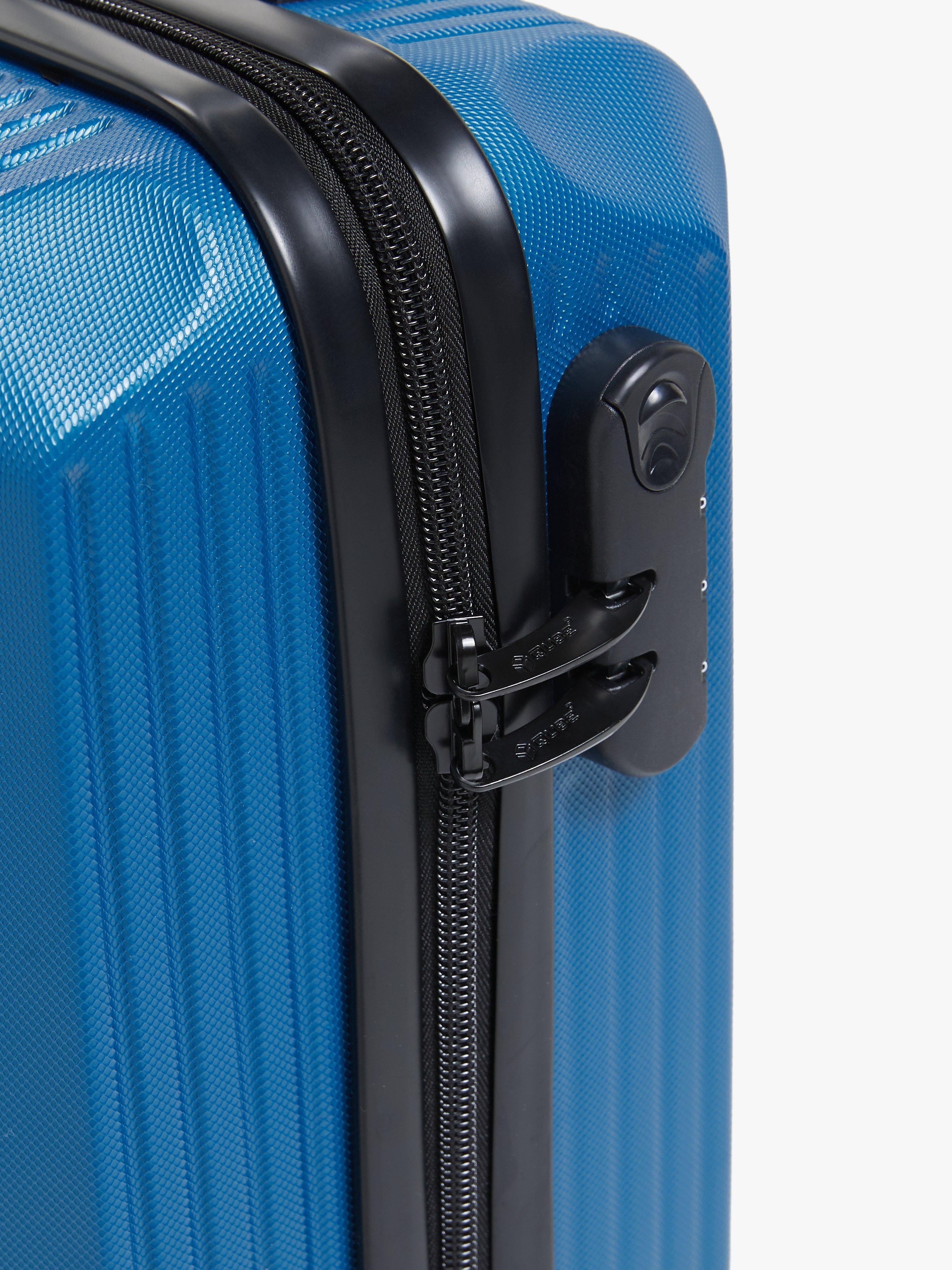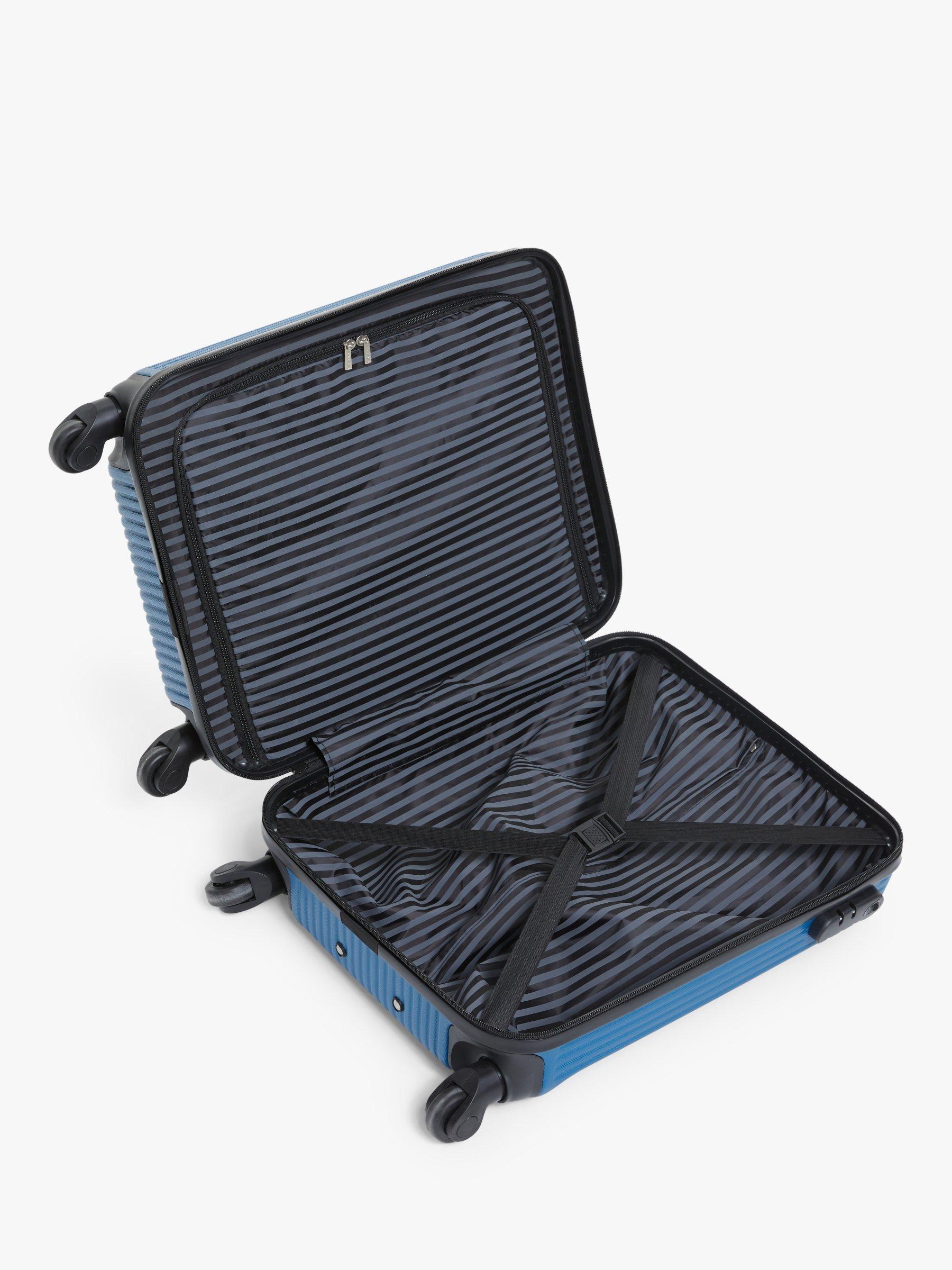 Practical and modern, it’s easily carried by its telescopic handle and roller wheels, and it keeps its contents safe with the TSA combination lock. There’s plenty of room to stow your belongings, with a zip away compartment to one side and compression straps to the base keeping belongings in place.