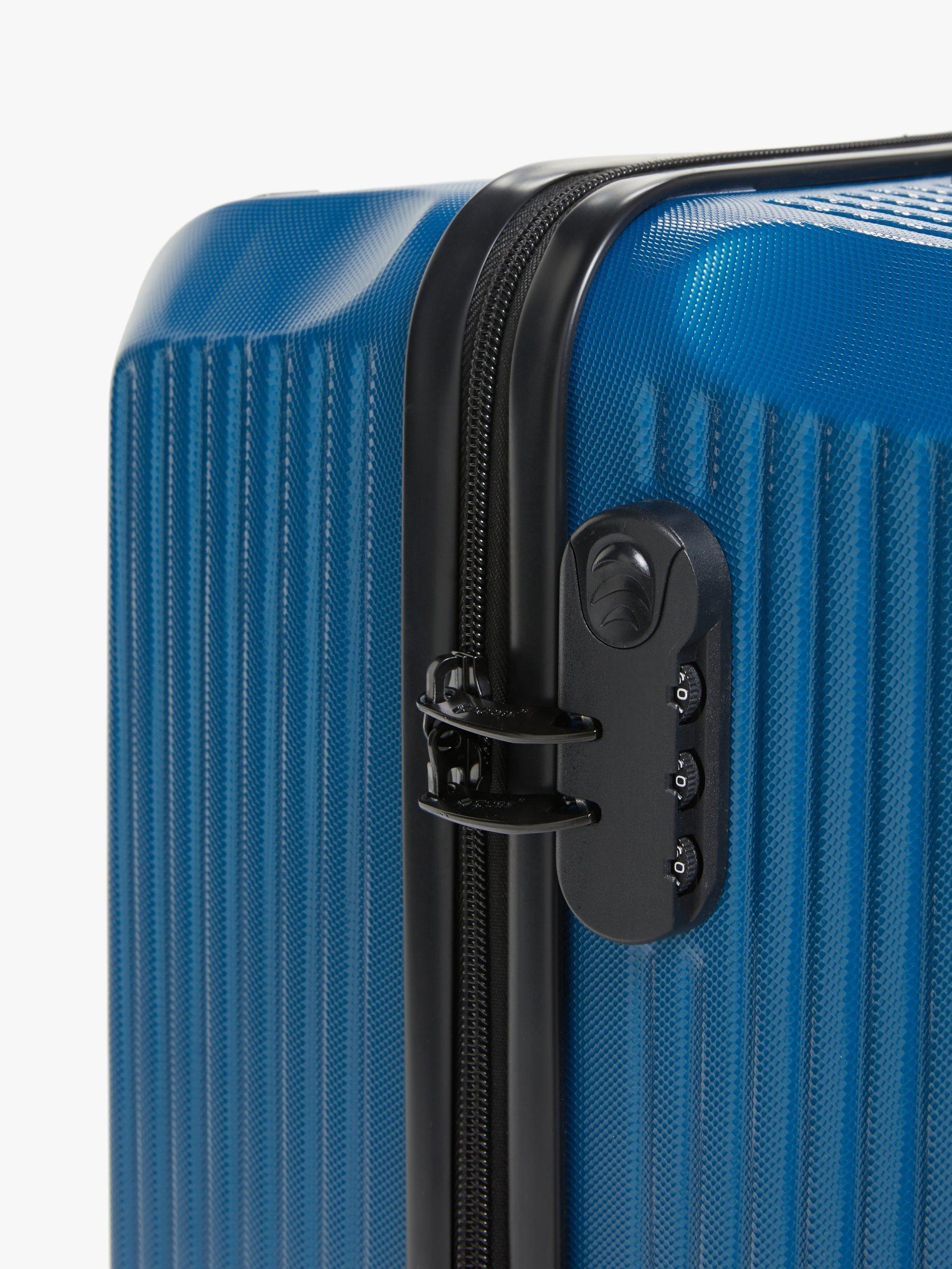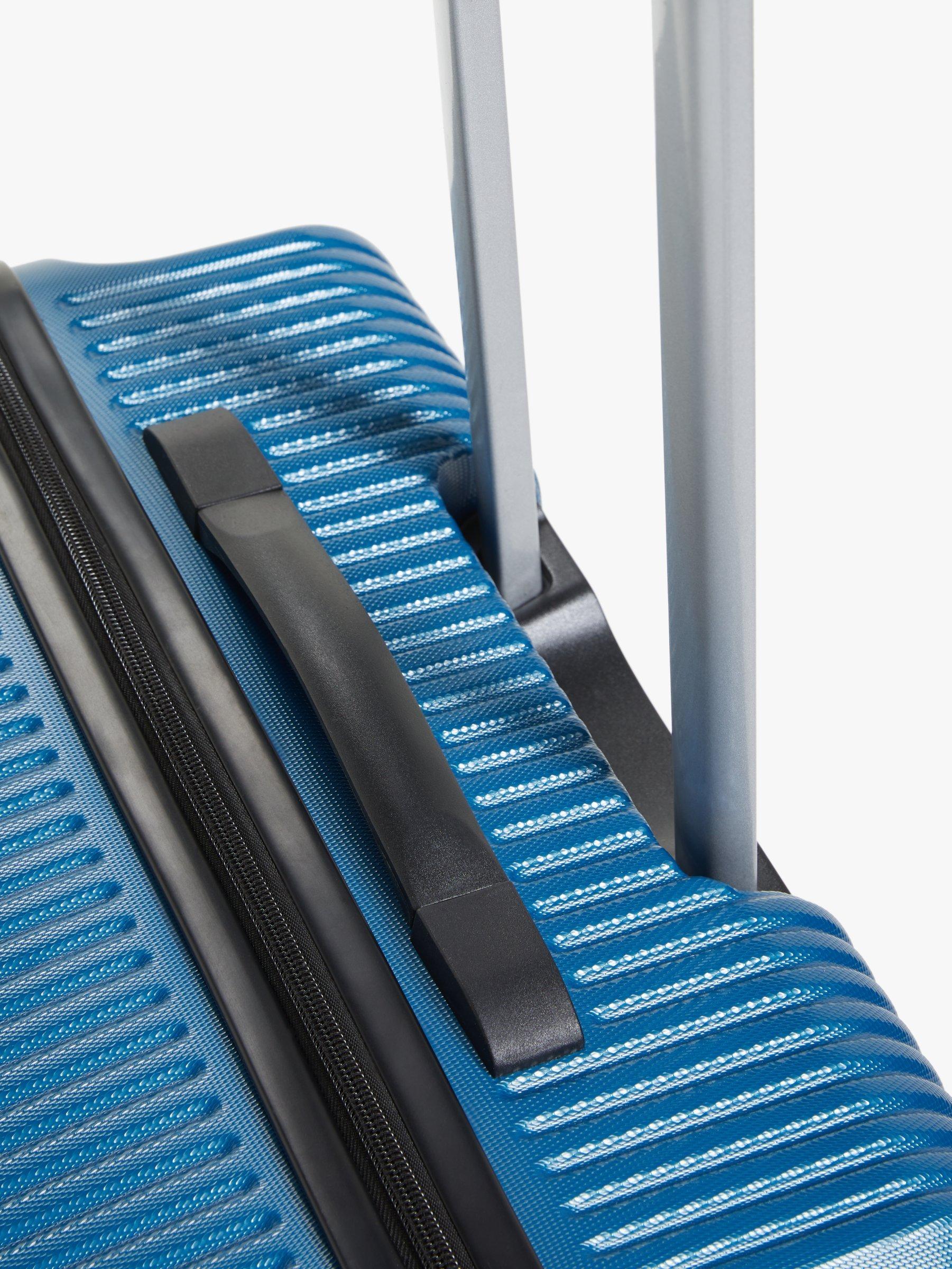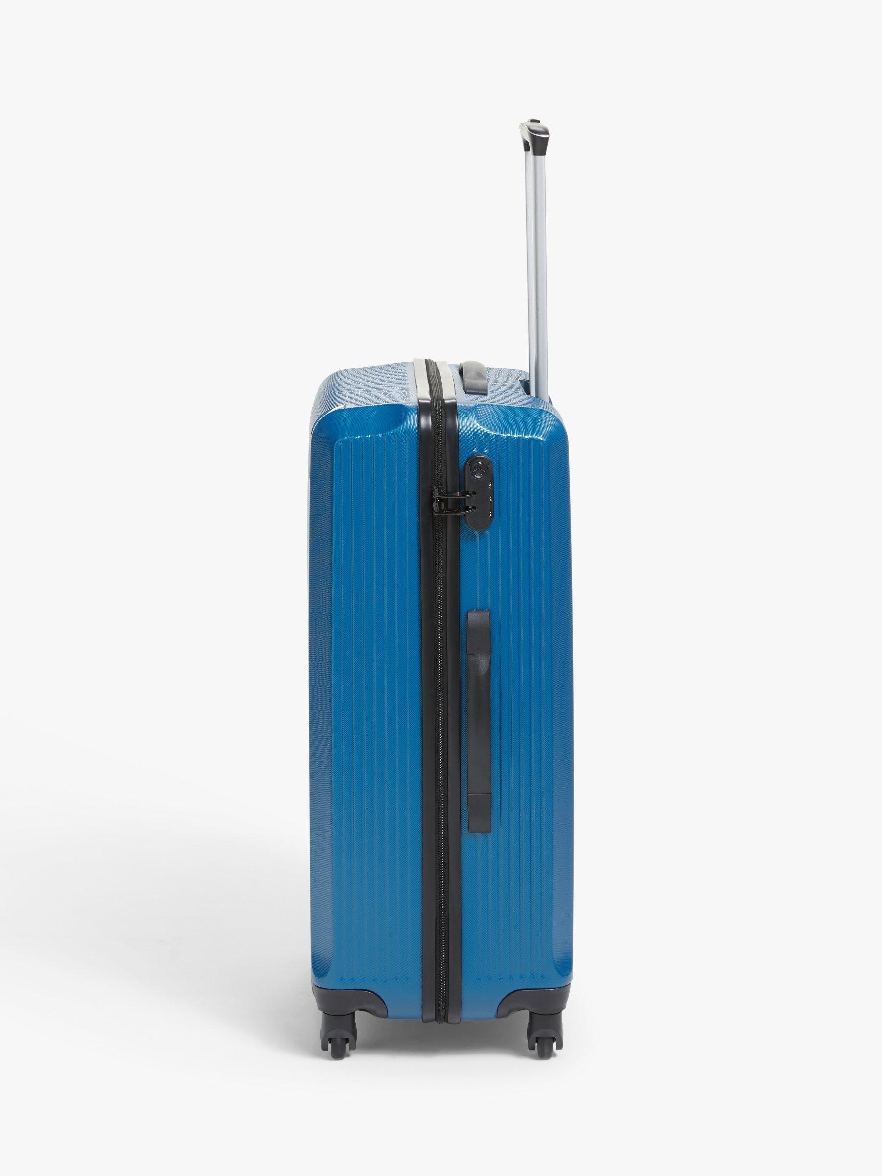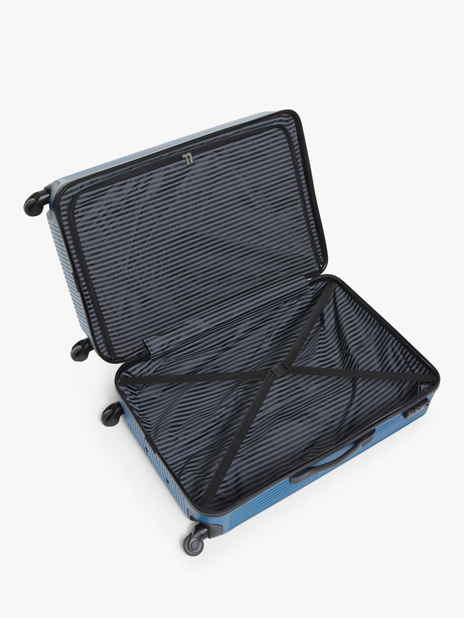 Practical and modern, it’s easily carried by its telescopic handle and roller wheels, and it keeps its contents safe with the TSA combination lock. There’s plenty of room to stow your belongings, with a zip away compartment to one side and compression straps to the base keeping belongings in place.