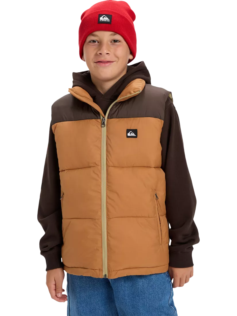 Ideal for everyday adventure in the winter months, this puffer gilet benefits from Quiksilver DryFlight Technology, protecting them from the wind and water. Designed with a zip-up closure, two zippered hand pockets, and elasticated hem.