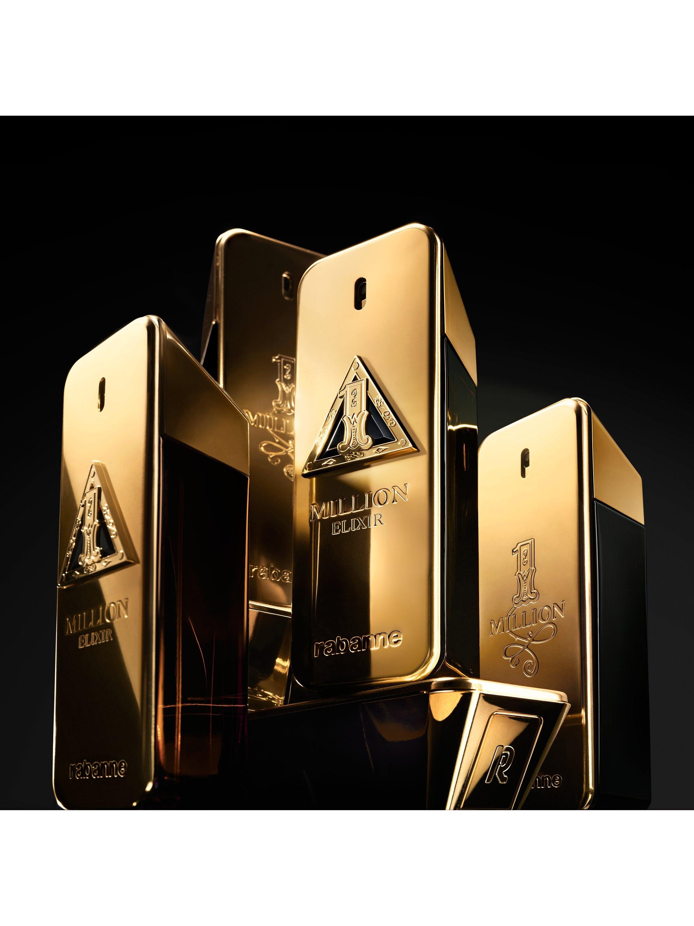 The bottle: The iconic 1 Million gold bar, bolder, distinct and sophisticated. A crafted jewel reflecting the different facets of the fragrance. The preciously crafted bottle encapsulates the soul and essence of 1 Million, the infinite depth of this new olfactory creation. The pinnacle of absolute intensity.