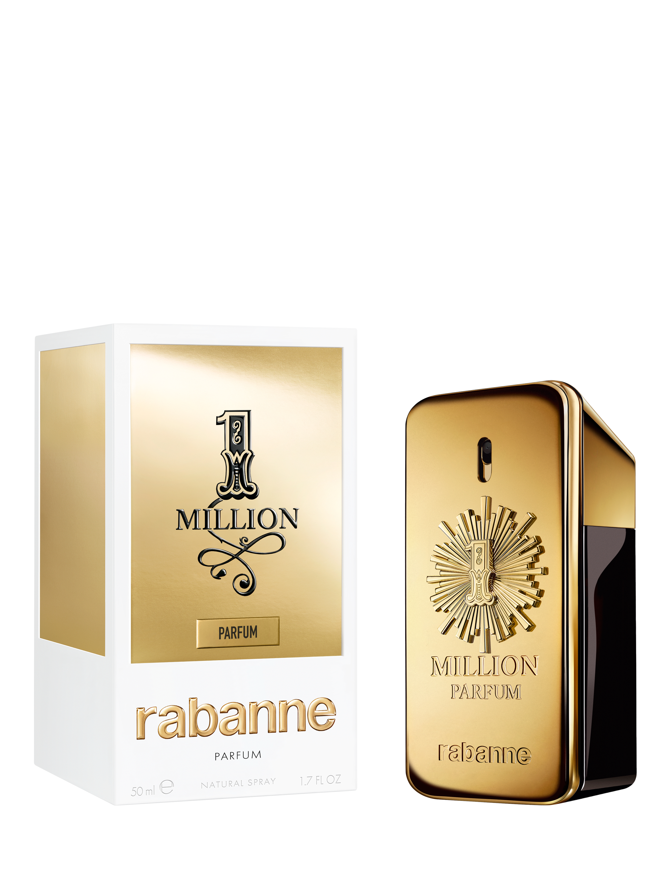 1 Million Parfum by Rabanne. An intensely masculine scent, with sun-drenched charm. This fragrance dares to push boundaries and plays with the senses. A duality between salty notes and sun-drenched leather. 1 Million Parfum is addictive, like gold. Like an emblem carved in metal, this fragrance is for those who dare to stand out amongst the millions. Be bold. Exaggerate, just a little.