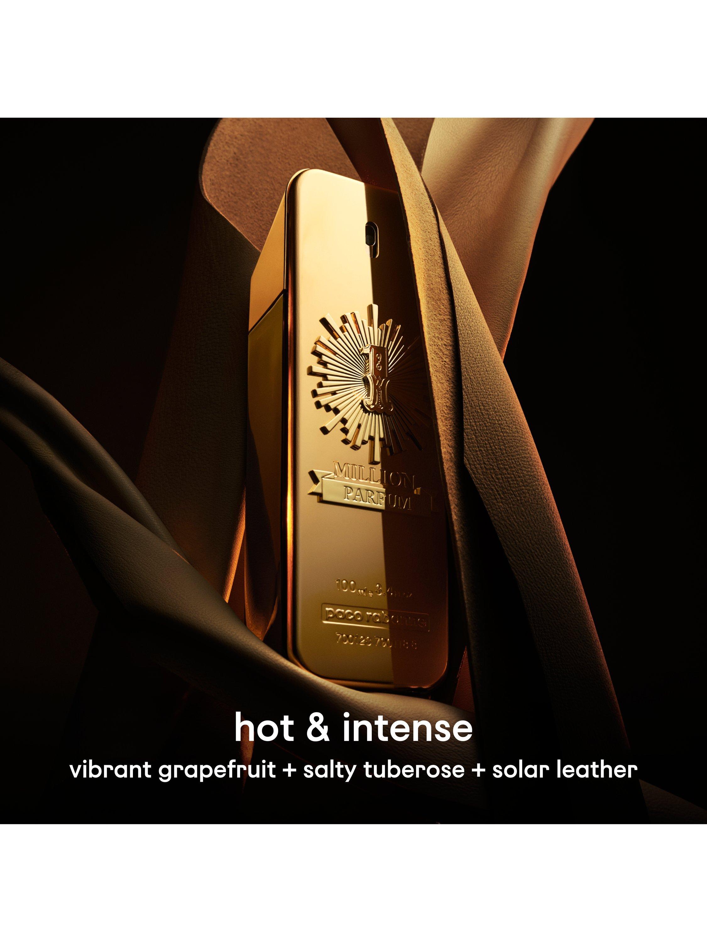 The fragrance: 1 Million Parfum. Power of solar leather. Enhanced by floral and salty notes. Always more opulent.