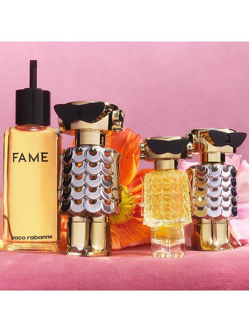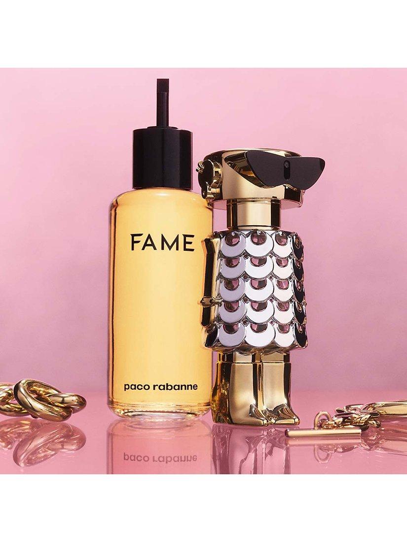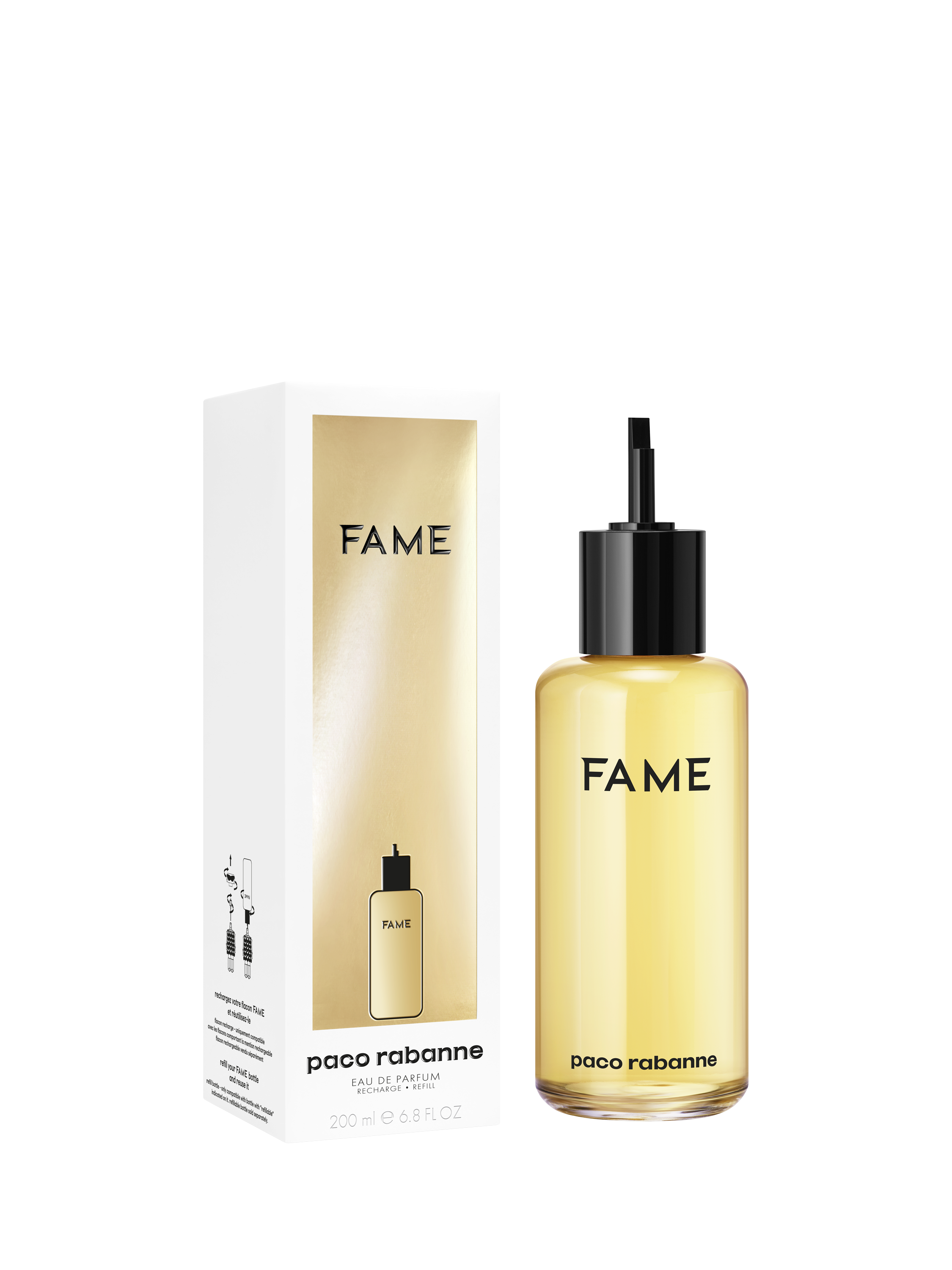 An icon is forever: keep the desire alive with the refillable format of Fame Eau de Parfum by Rabanne.