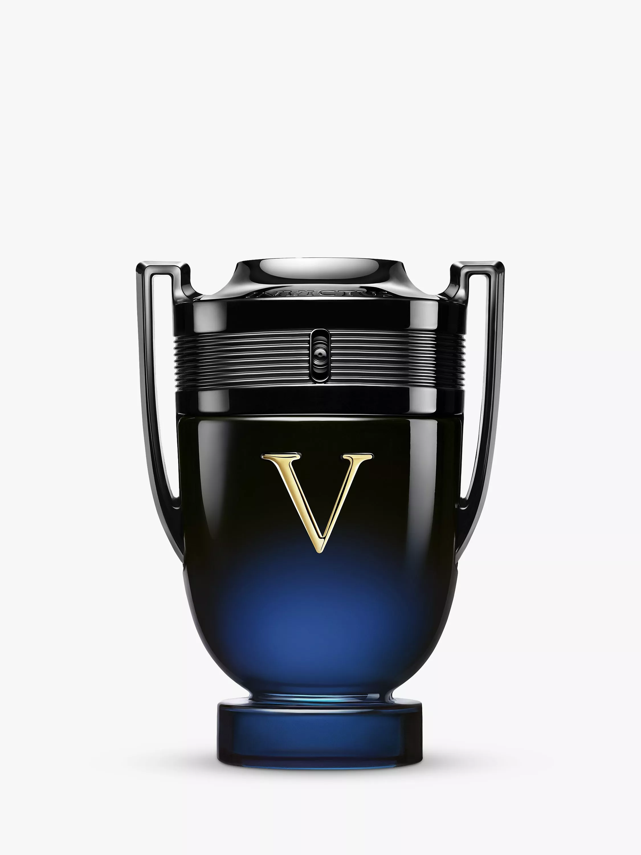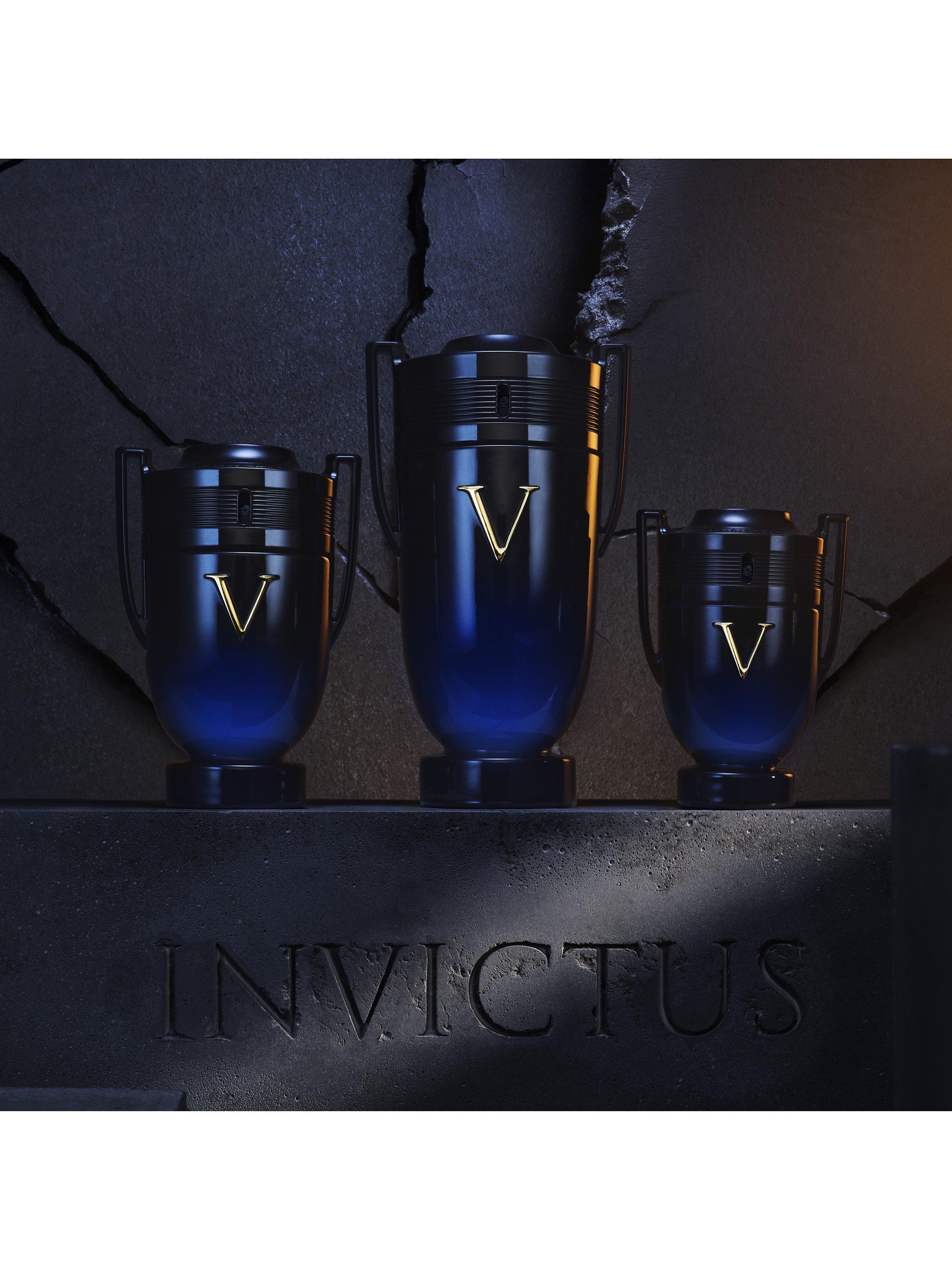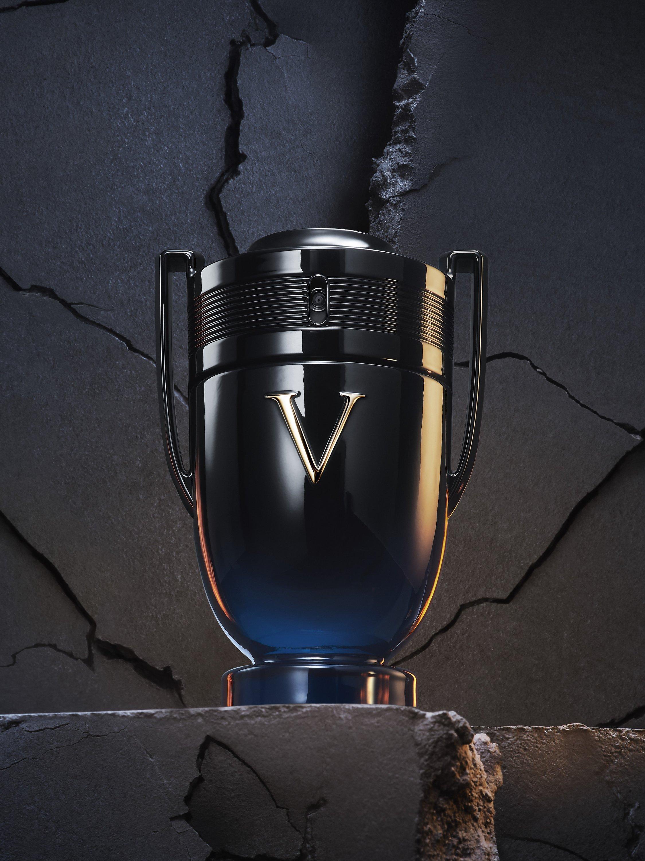 The bottle: The iconic Invictus Victory bottle concentrates all its power with an elegantly lacquered trophy that reflects the intense richness of the elixir it holds. The Golden V for victory is engraved in the glass, standing out against a lacquered gradient of black to dark blue. A glossy black cap crowns the trophy.