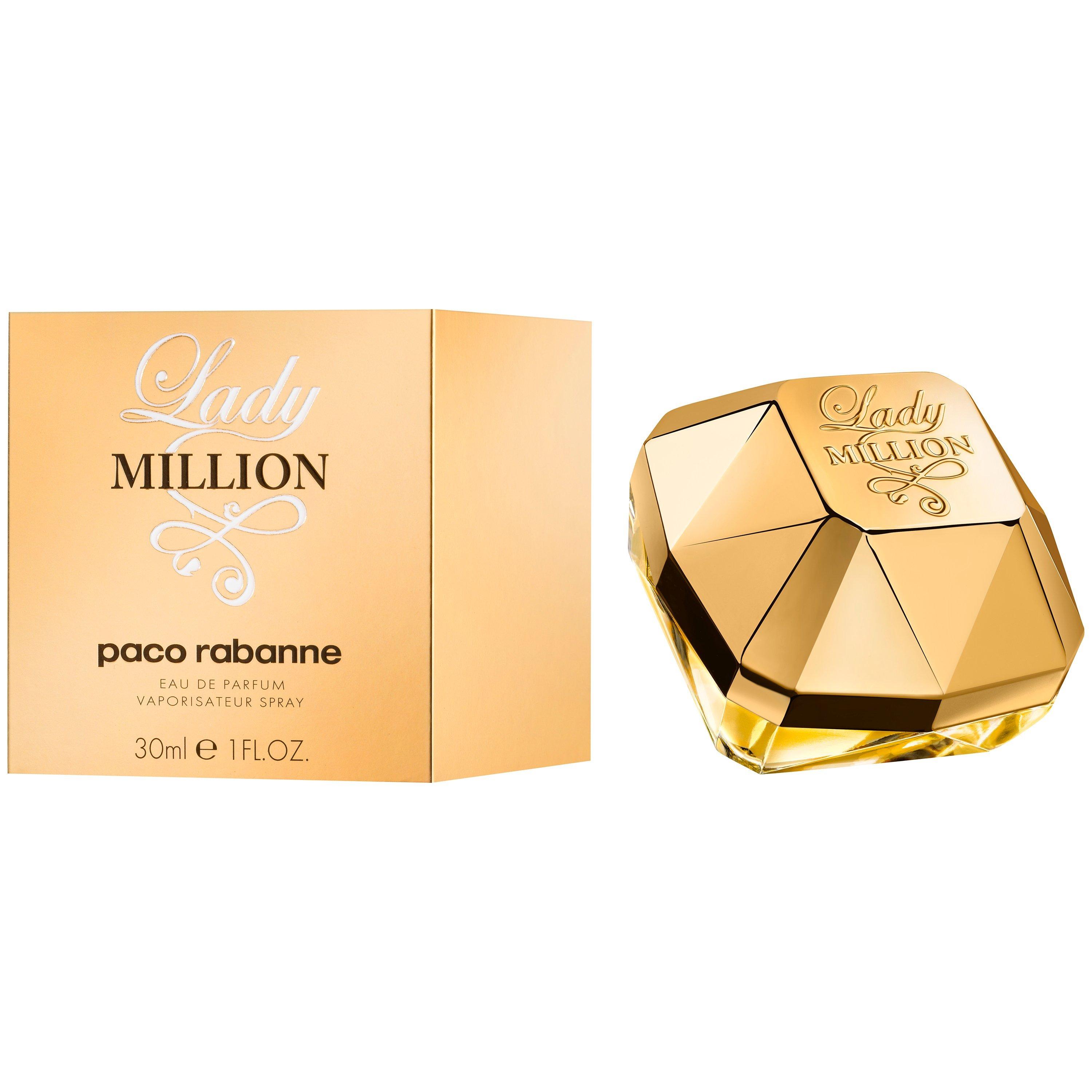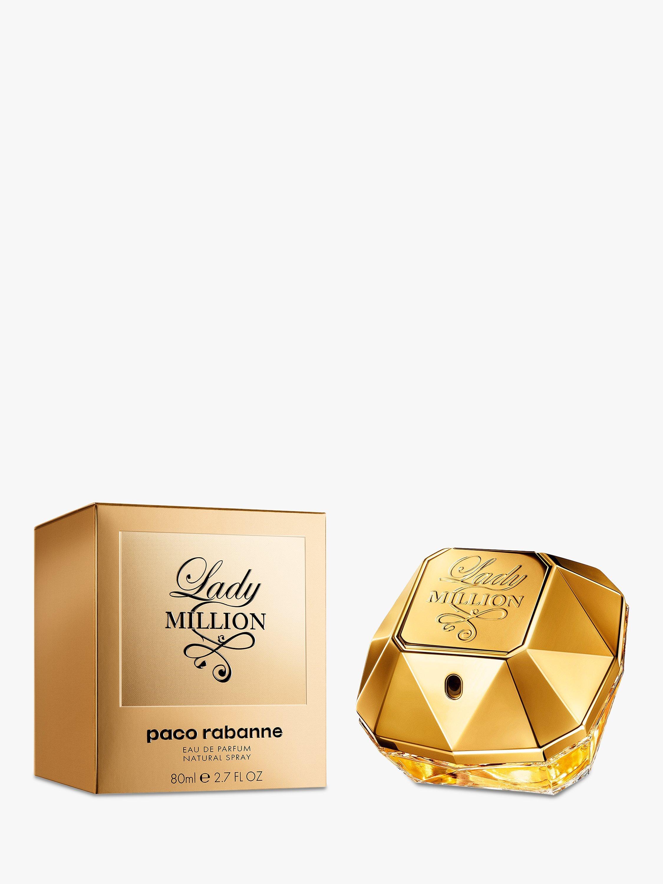 The fragrance: Lady Million is a fresh, woody, floral scent with notes of jasmine sambac, orange blossom, neroli, raspberry and bitter orange, this signature honey patchouli perfume manages to be evocative and brave.