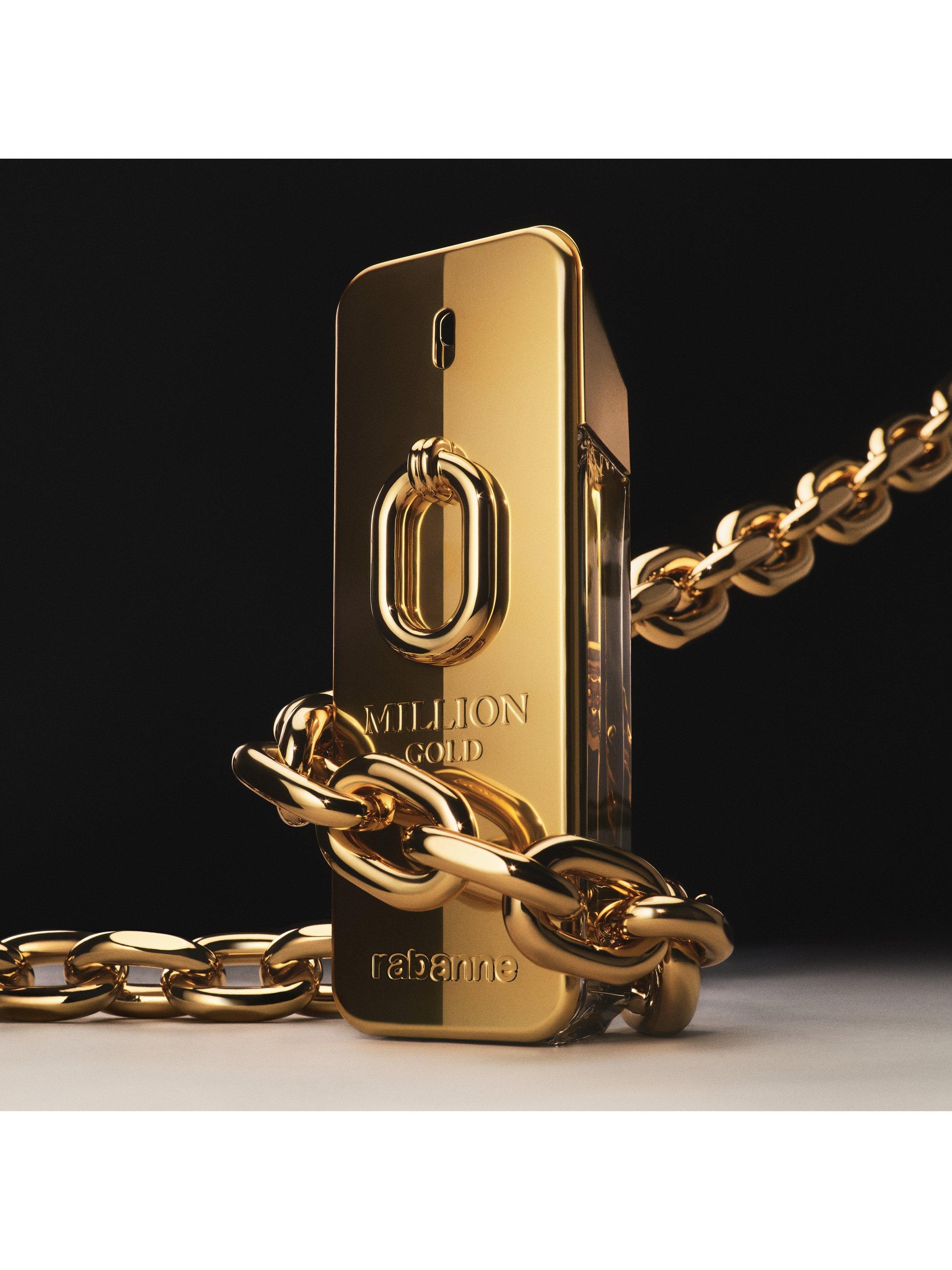 Sleeker. Edgier. Million Gold cologne expresses the thrill of golden success. Radiating an ecstatic and vibrant energy. An ultra-sensual and woody scent blending fresh mandarin with warm cedarwood and vibrant sandalwood.