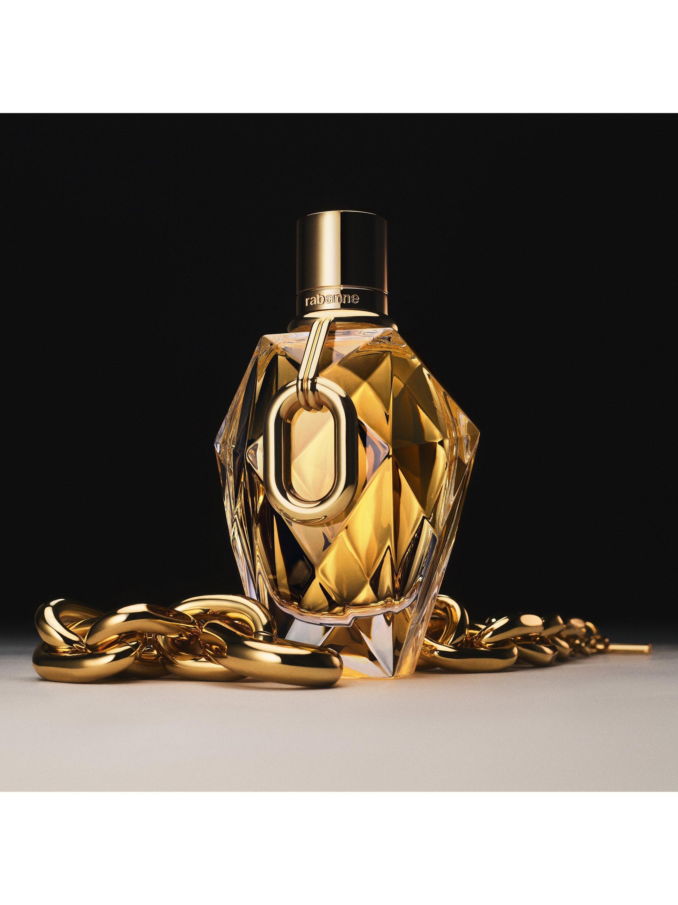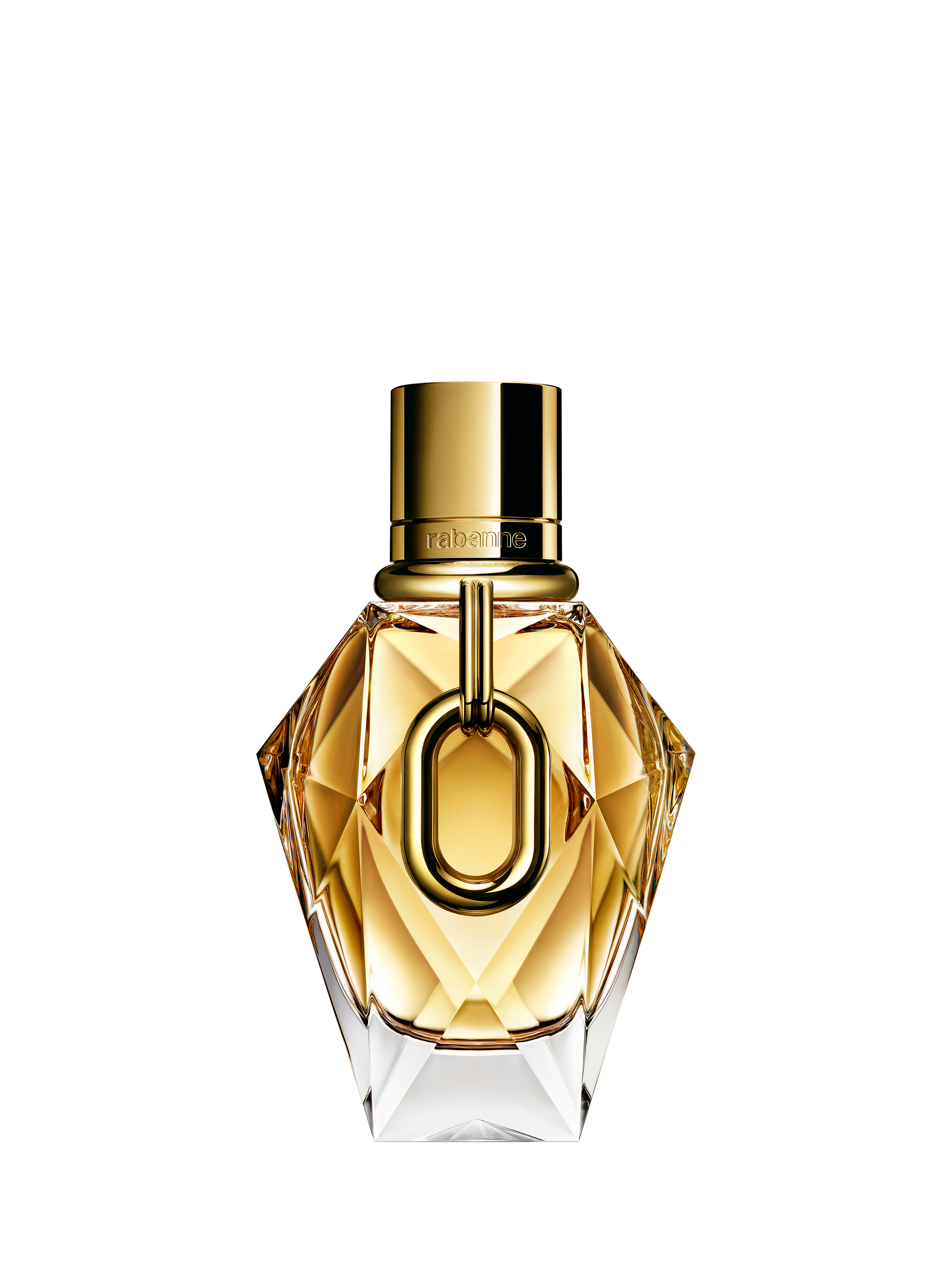 Million Gold for Her perfume is Rabanne’s fragrant crown jewel. Sleek and sophisticated, the bottle rises with a multi-faceted glass, magnifying the golden scent within. The fragrance is adorned with a new stand-out detail that remains embedded in the Maison’s rich History: the iconic XL link.