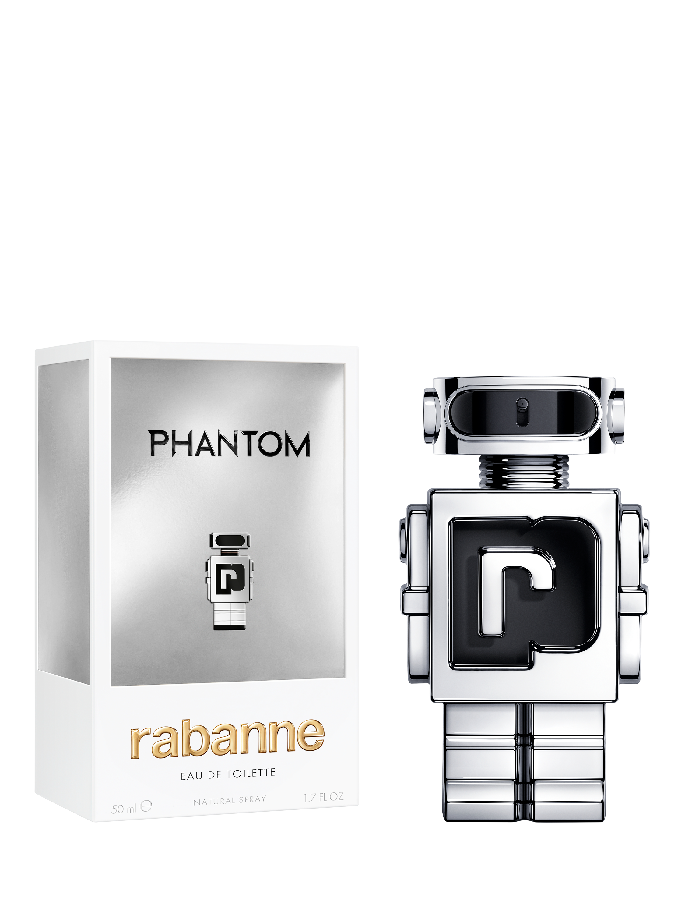 The bottle: Catching the eye with its bold and elevated design, the Phantom Eau de Toilette bottle captures the essence of enigmatic masculinity in an iconic black and silver signature.