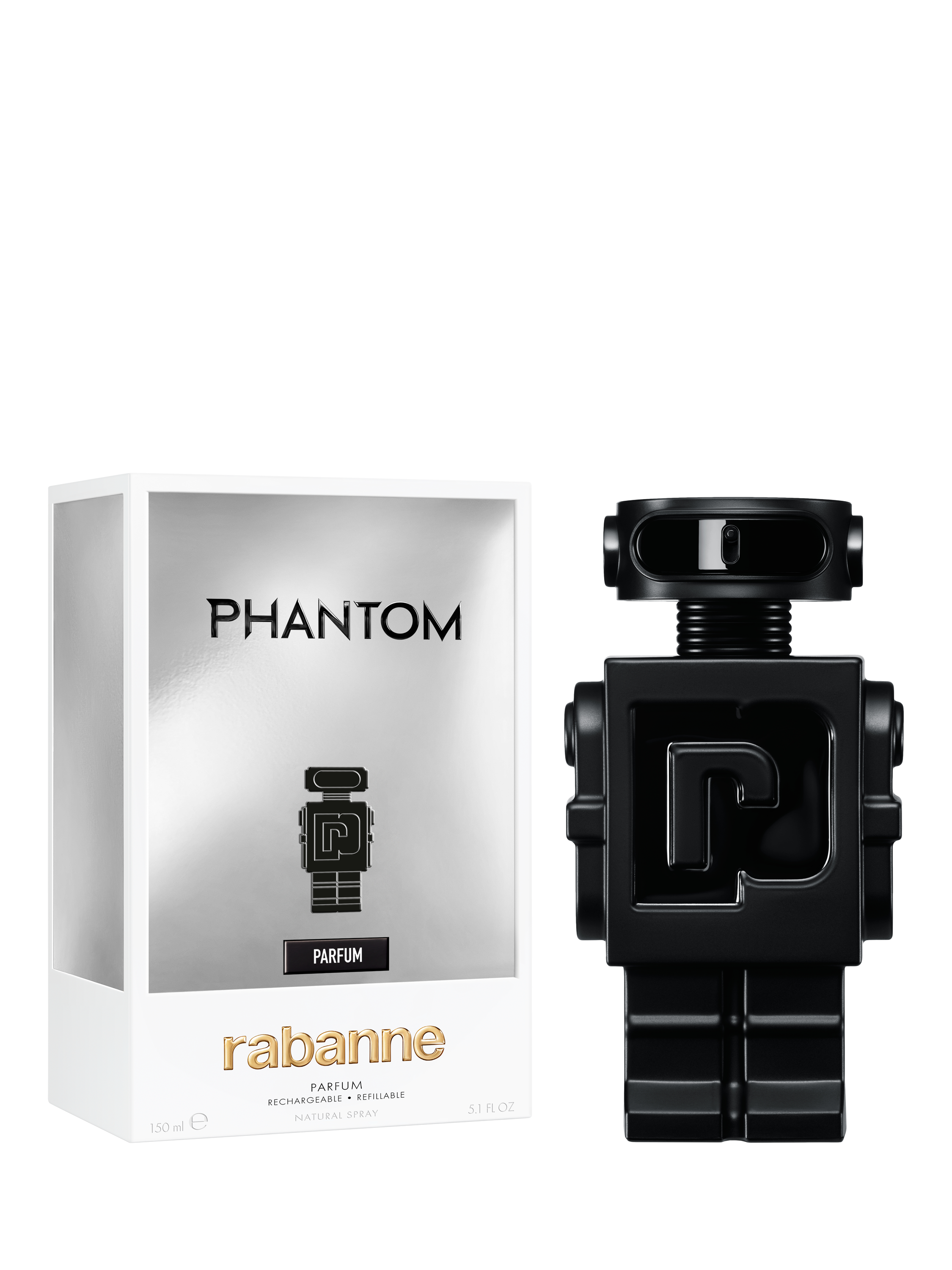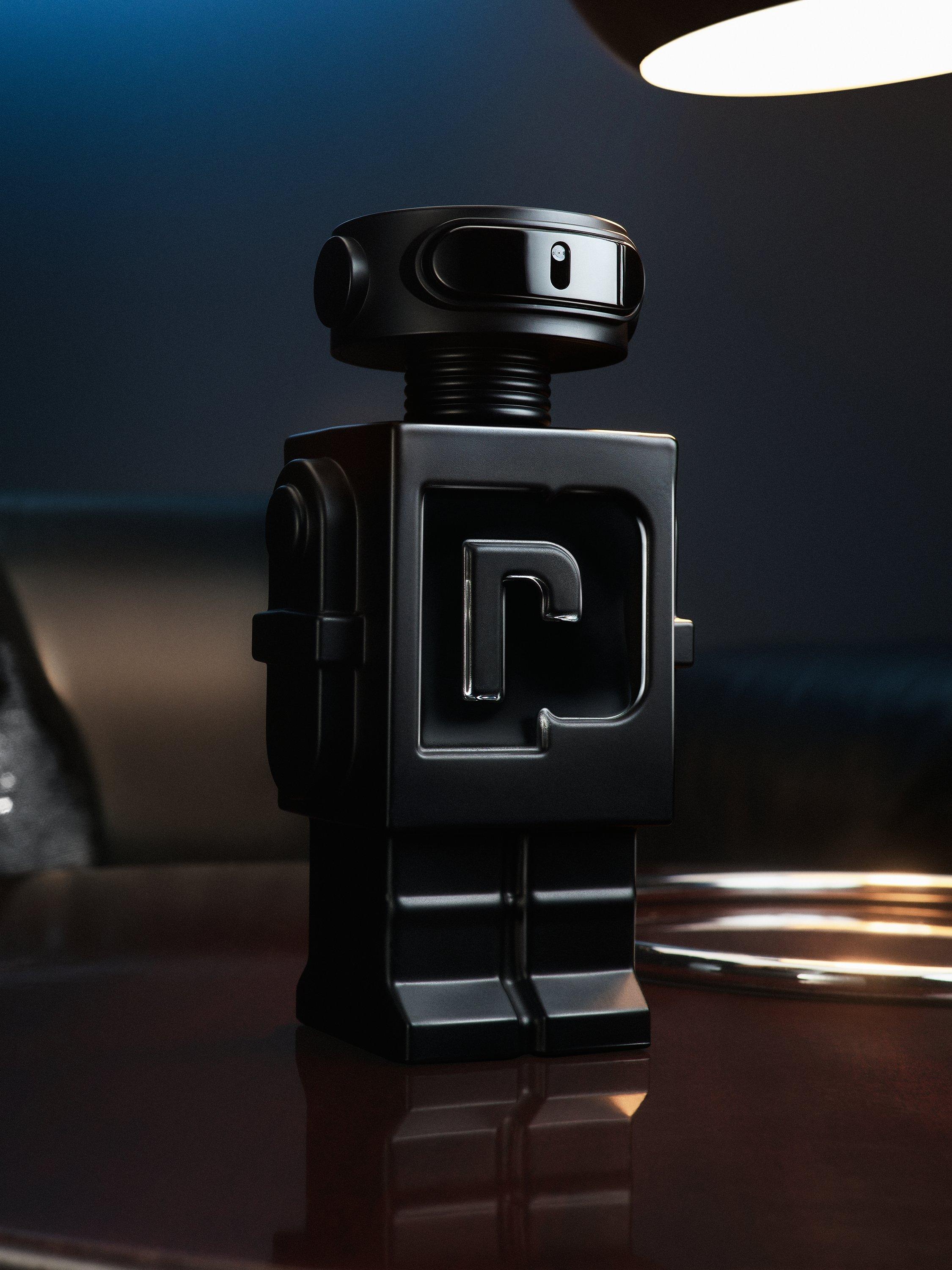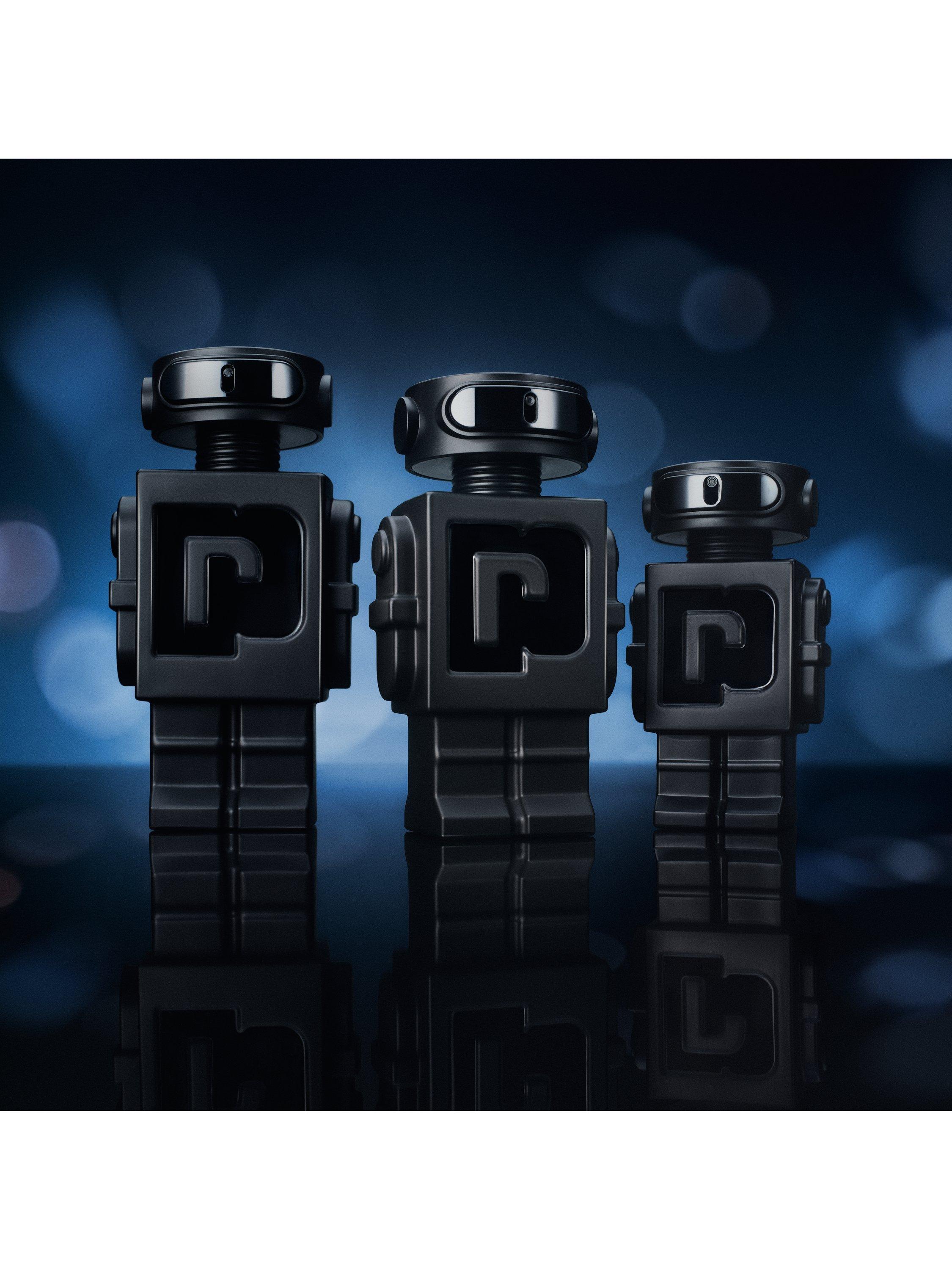 The bottle: Reimagined with accents of dark matte black to reflect the assertive facets of masculinity, the exceptional bottle of Phantom Parfum by Rabanne is a masterpiece in elevated design. Bold yet sophisticated, the iconic chest piece of the original evolves from chromatic silver to matte black.