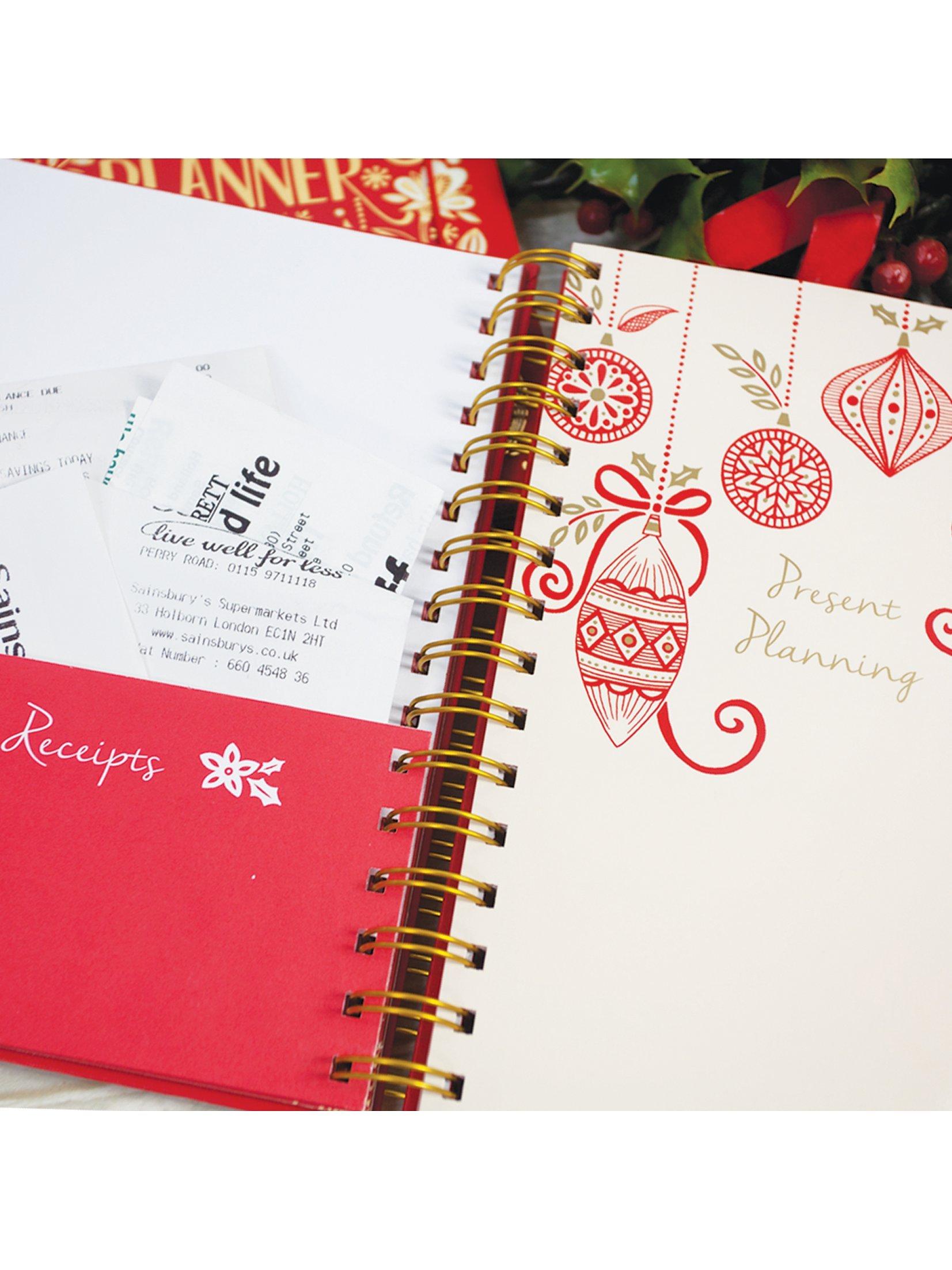 Featuring a beautiful, heavily gold foiled hardcover with elastic closer and containing different tabbed sections and pockets for all manner of festive organising. From card and gift sending to menu planning, there's lots of helpful sections including a plastic pocket for receipts.