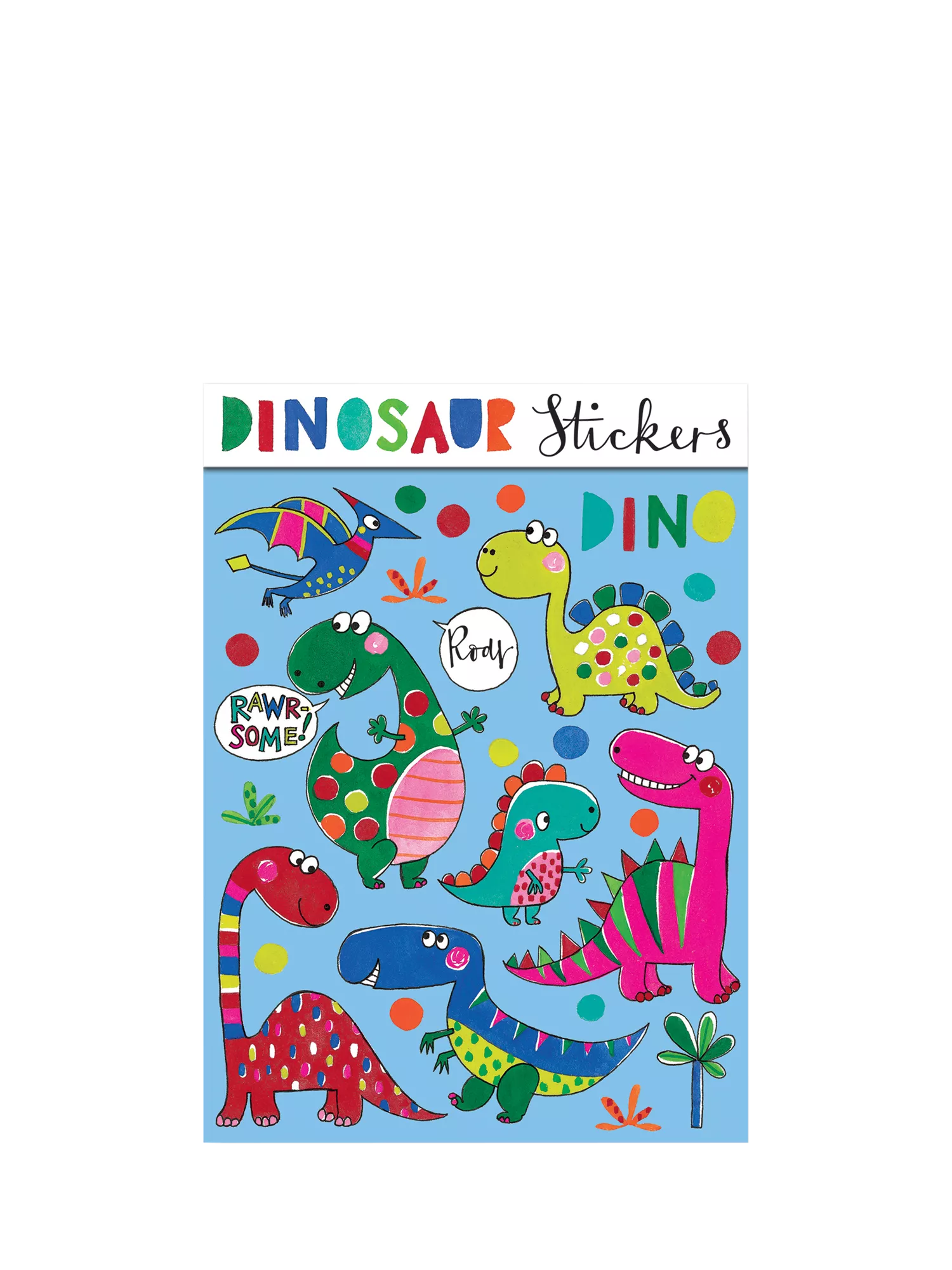 This eye-popping sticker book contains 4 sheets of dinosaur themed shaped stickers totalling 80 stickers per book. Each sticker sheet is perforated at the top and the cover is gloss laminated.